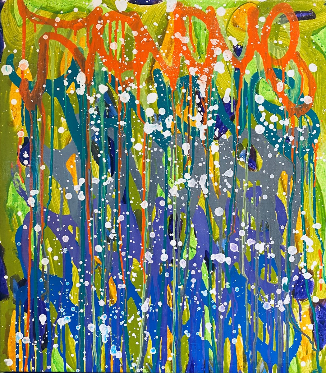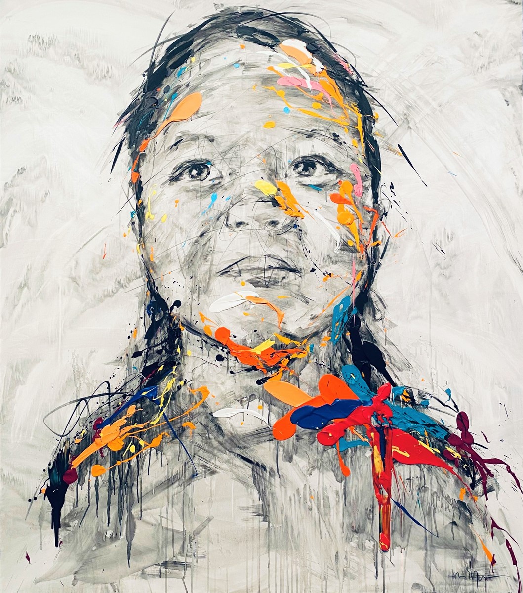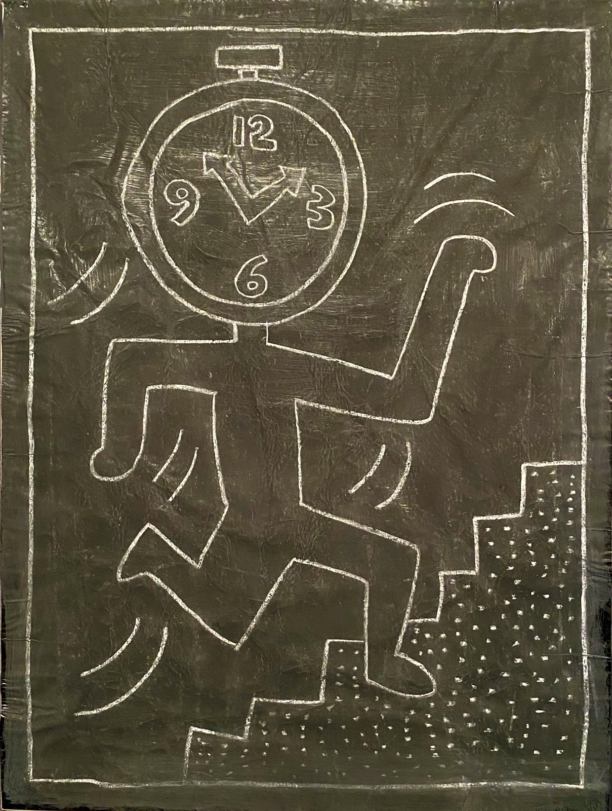 Dessin original à la craie sur papier noir réalisé sur une affiche de métro.
