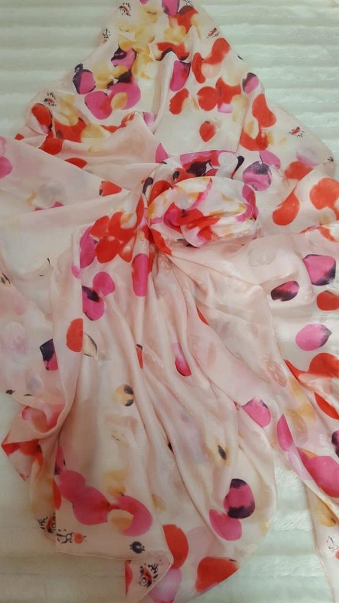 Silk scarf. 126 x 126 cm approximately. Excellent condition.