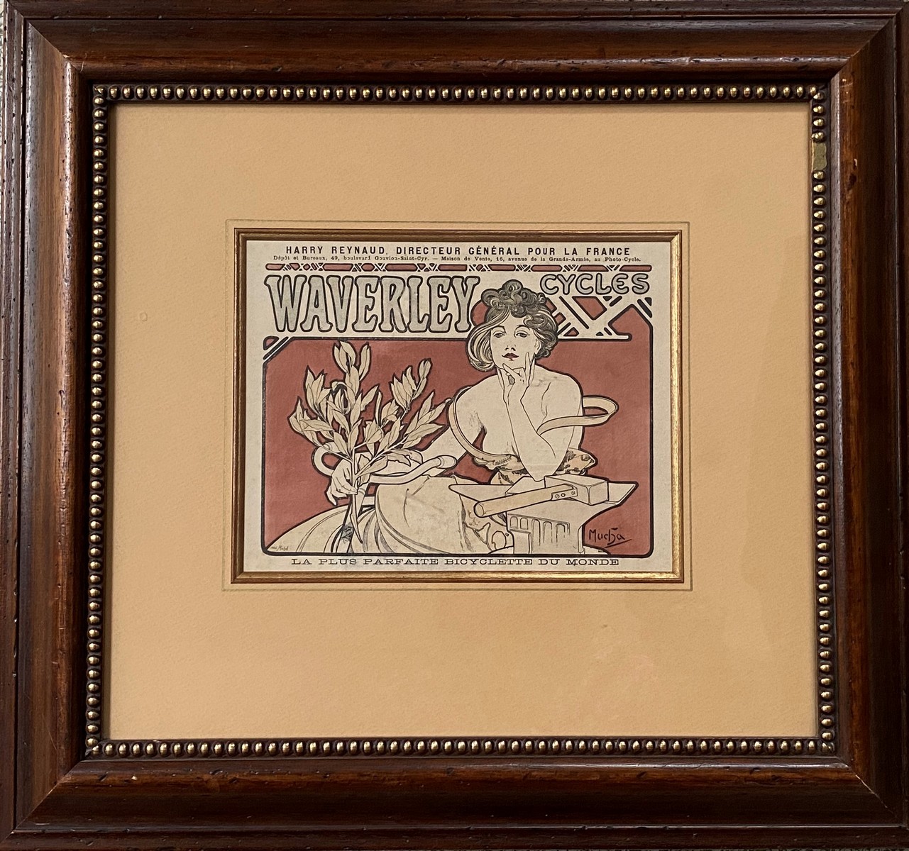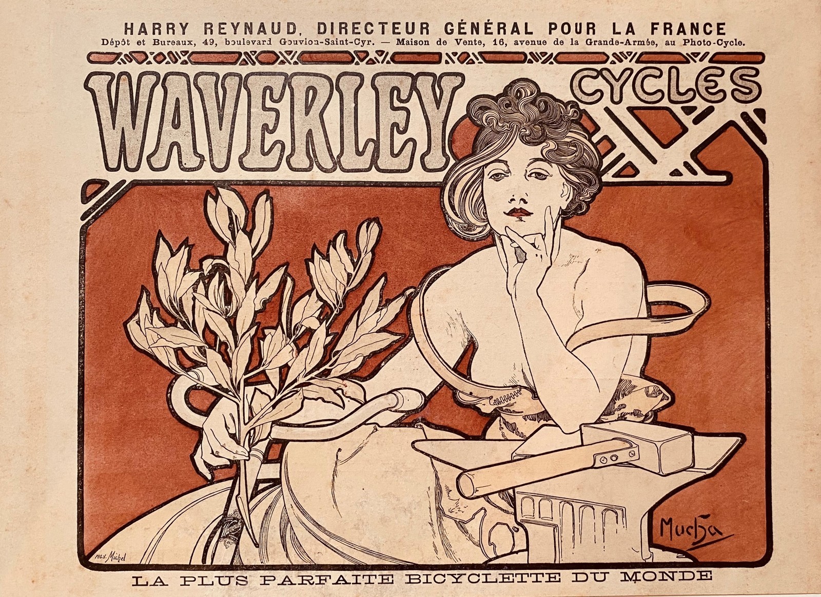 "The Waverley brand was an American brand from Indianapolis, it was represented in Europe. ' Rennert page 206. One of Mucha's most beautiful posters, with that elegance which is so particular to him, and a drawing of a precision and nobility of which Alphonse Mucha was the undisputed Master.