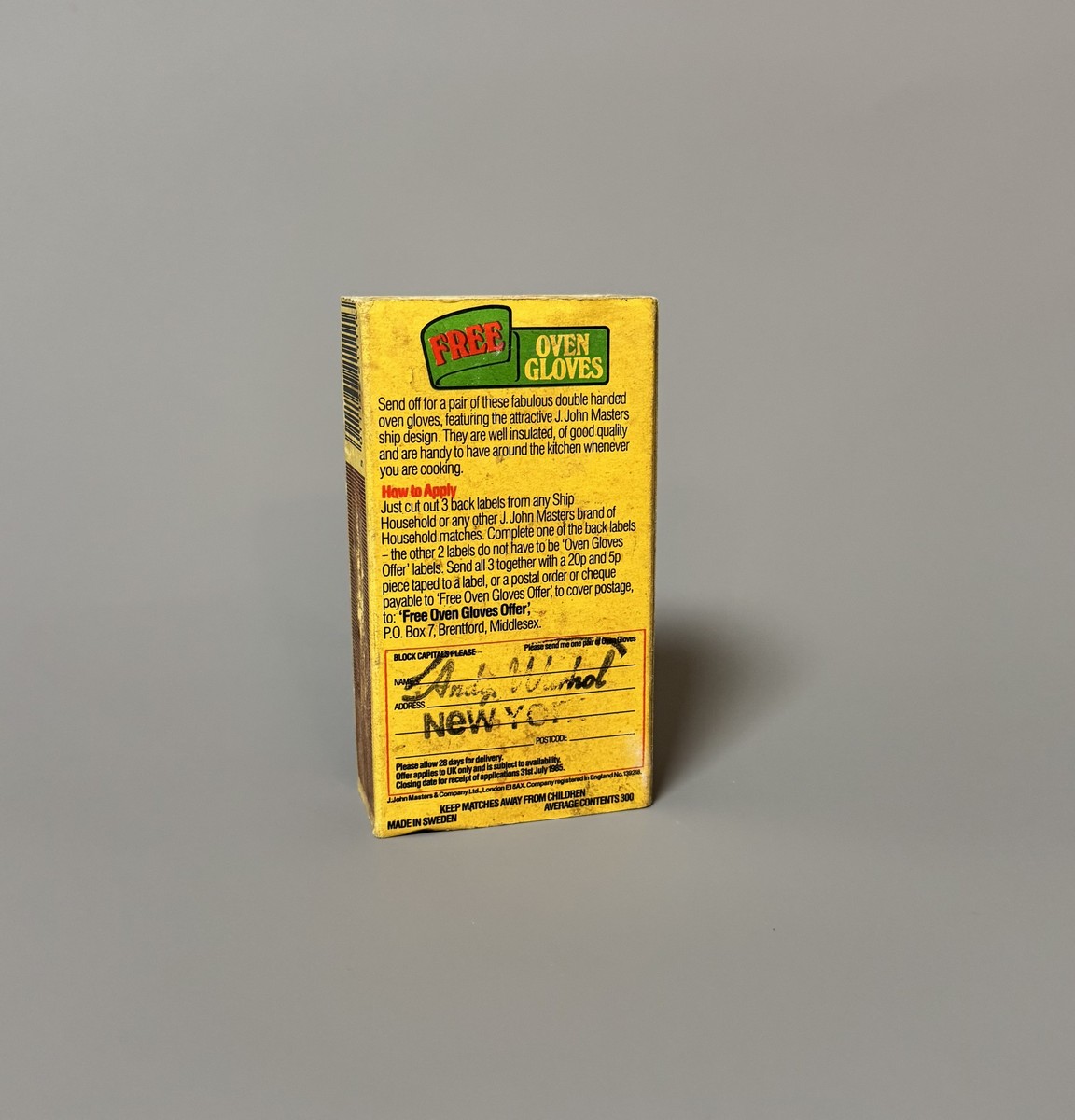 Lot 178 - Andy Warhol (1928-1987), Attributed to. Ship Match Household matchbox.