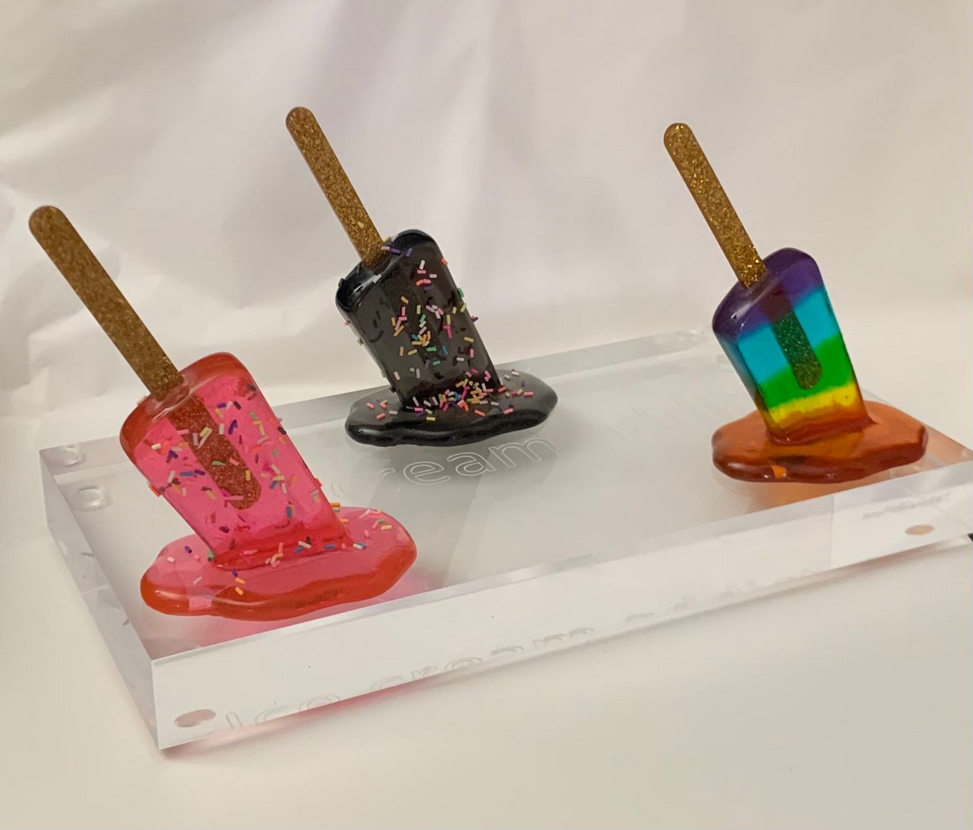 Resin sculpture on a plexiglass tray