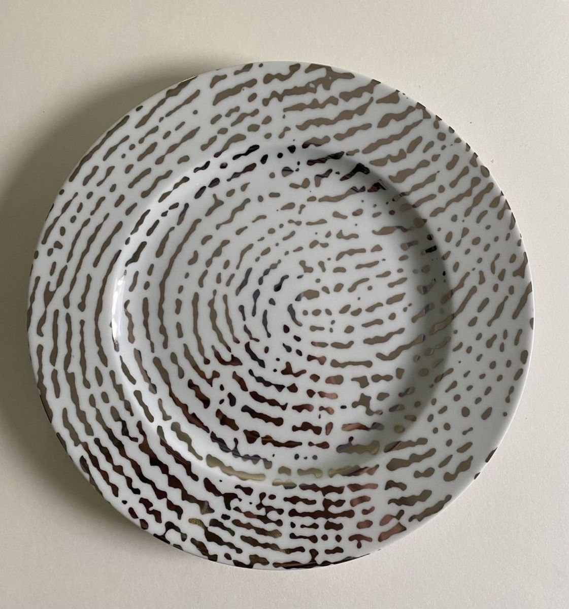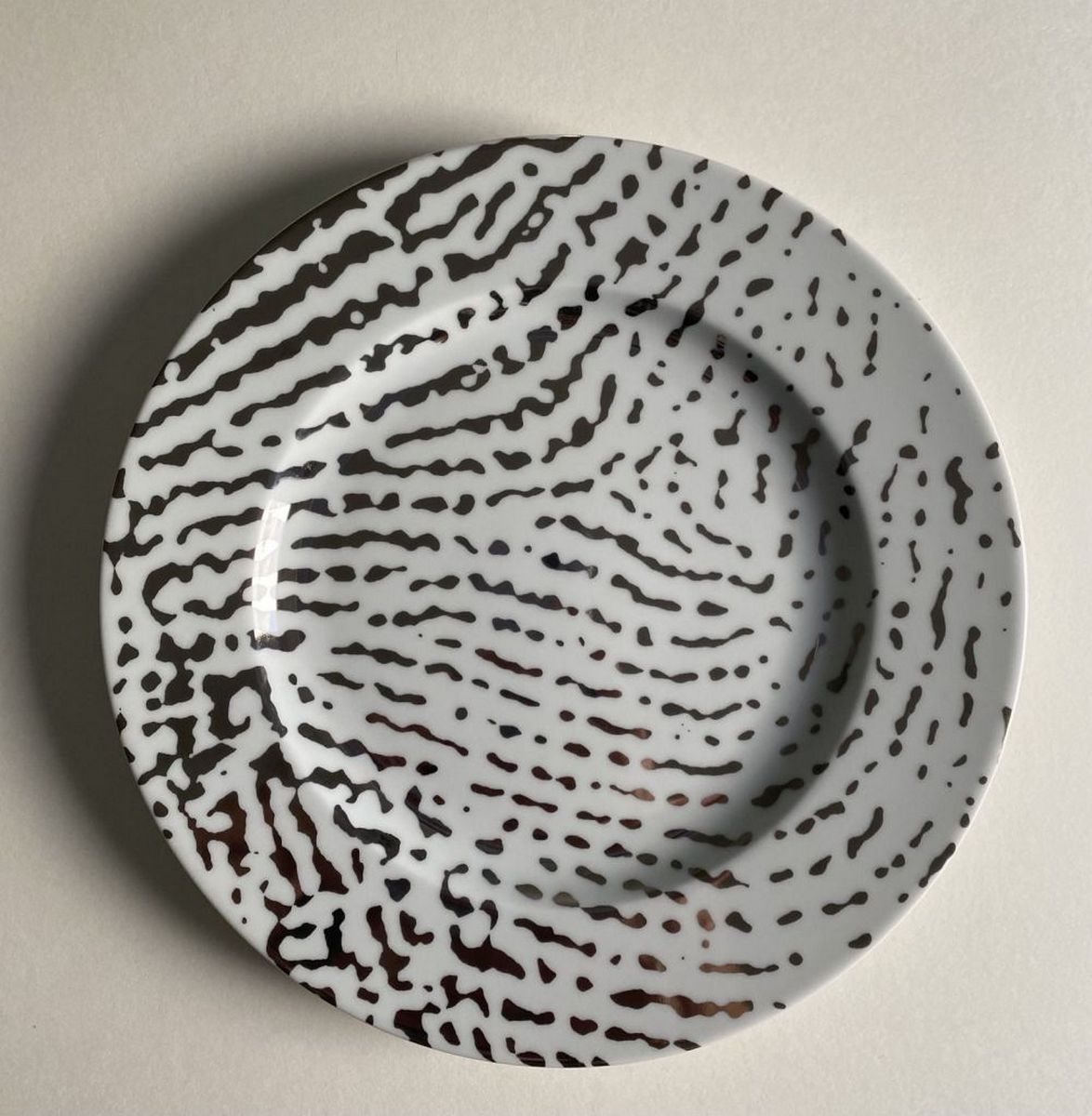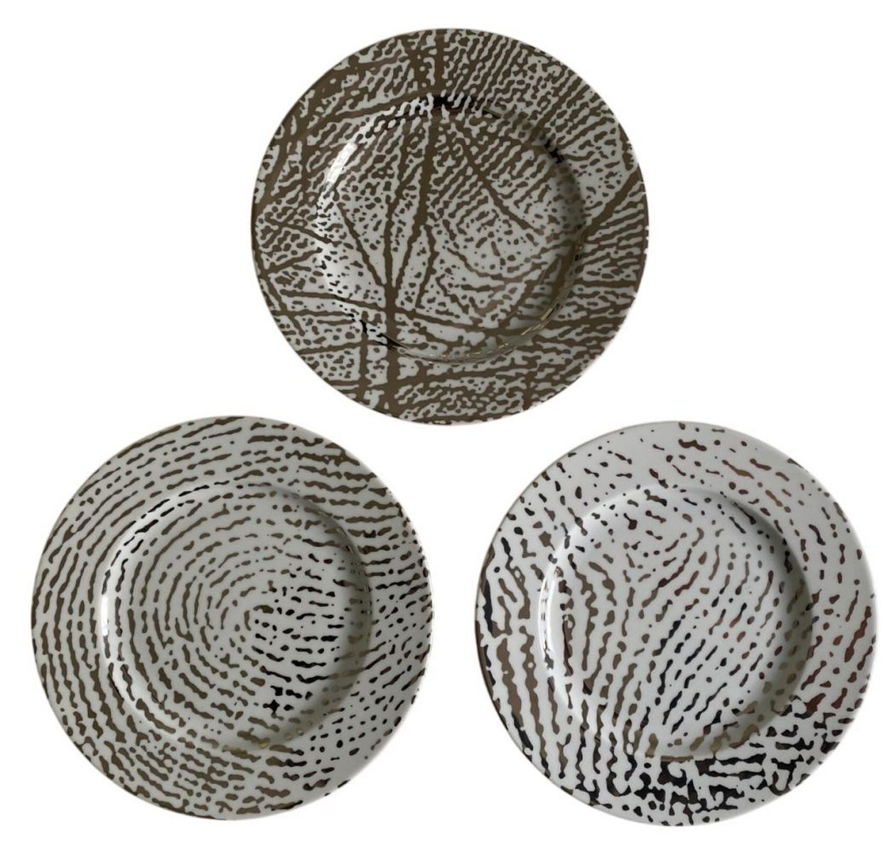 Set of 3 Limoges porcelain plates featuring palm (La palme), index (L'index), and little finger (L'auricule) prints. Signed in plate, numbered on the back /1000. Good condition, 26.5 cm diameter.