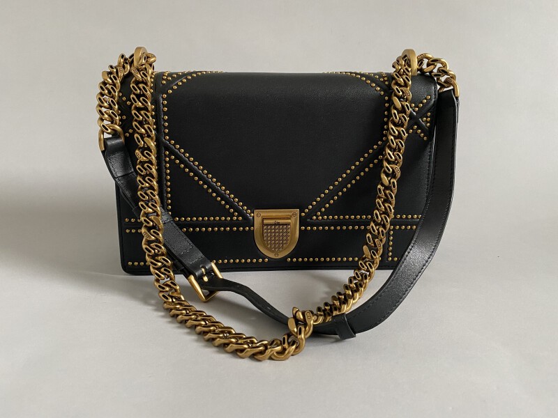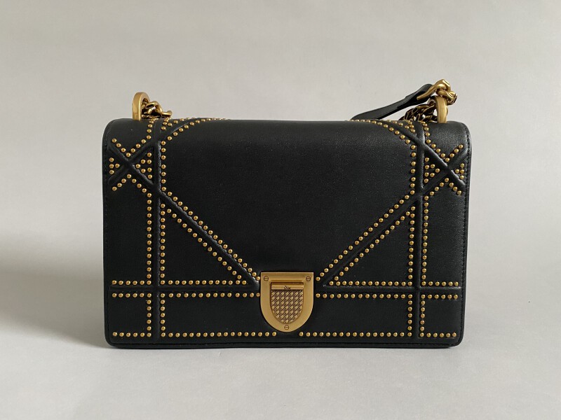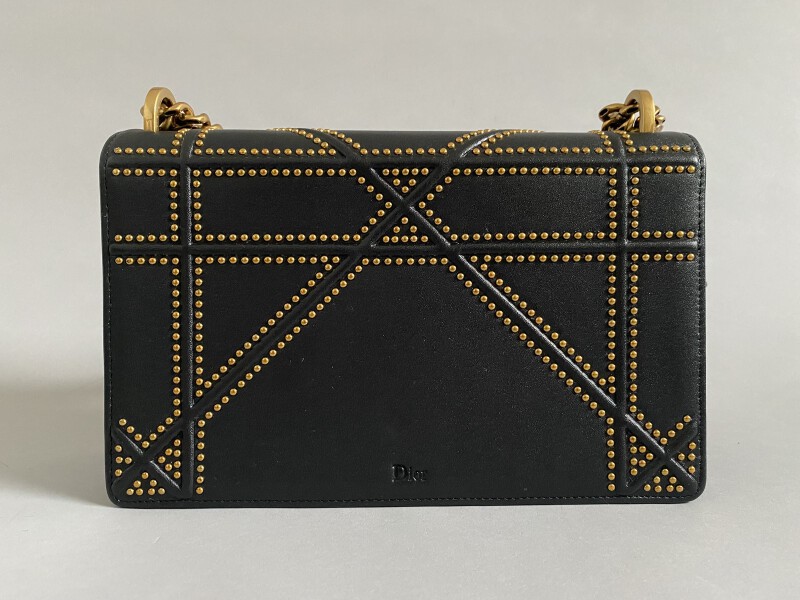DIORAMA BAG in black leather, gold metal studs and clasp.