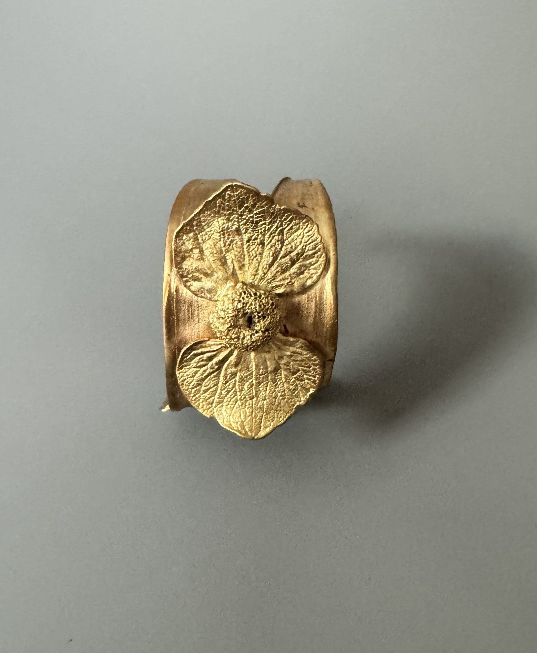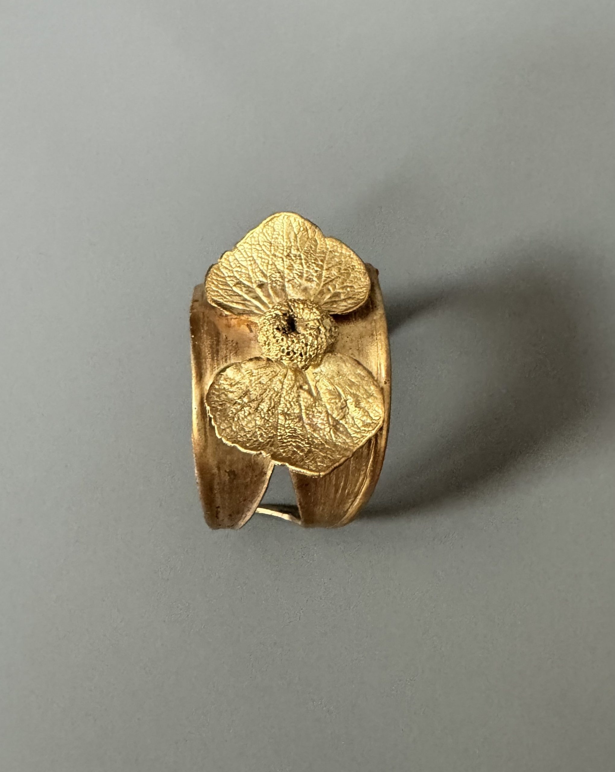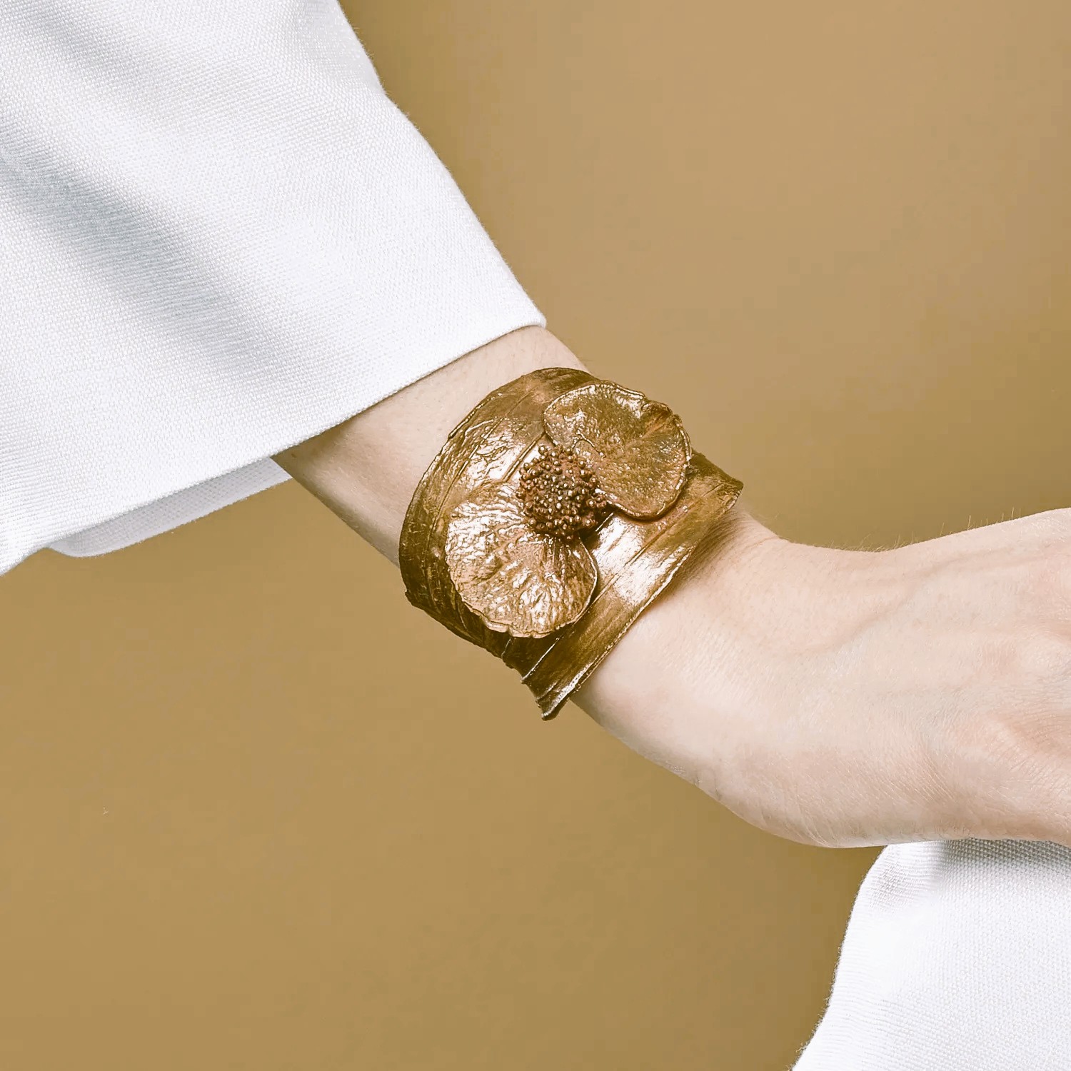 A galvanized bronze “hydrangea” cuff bracelet by CLAUDE LALANNE. Signed and numbered 12/24. Gross weight: 86.51 gr. Wrist size: 17 cm approx. Opening: 3.3 cm. Width: 5.4cm.
