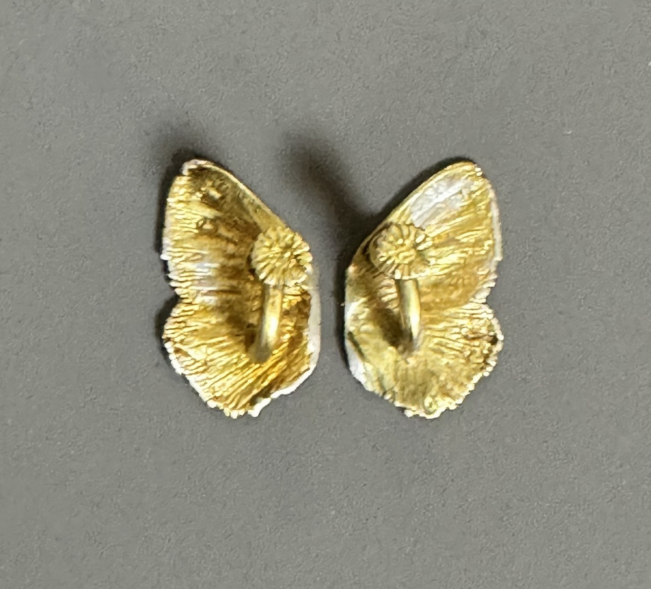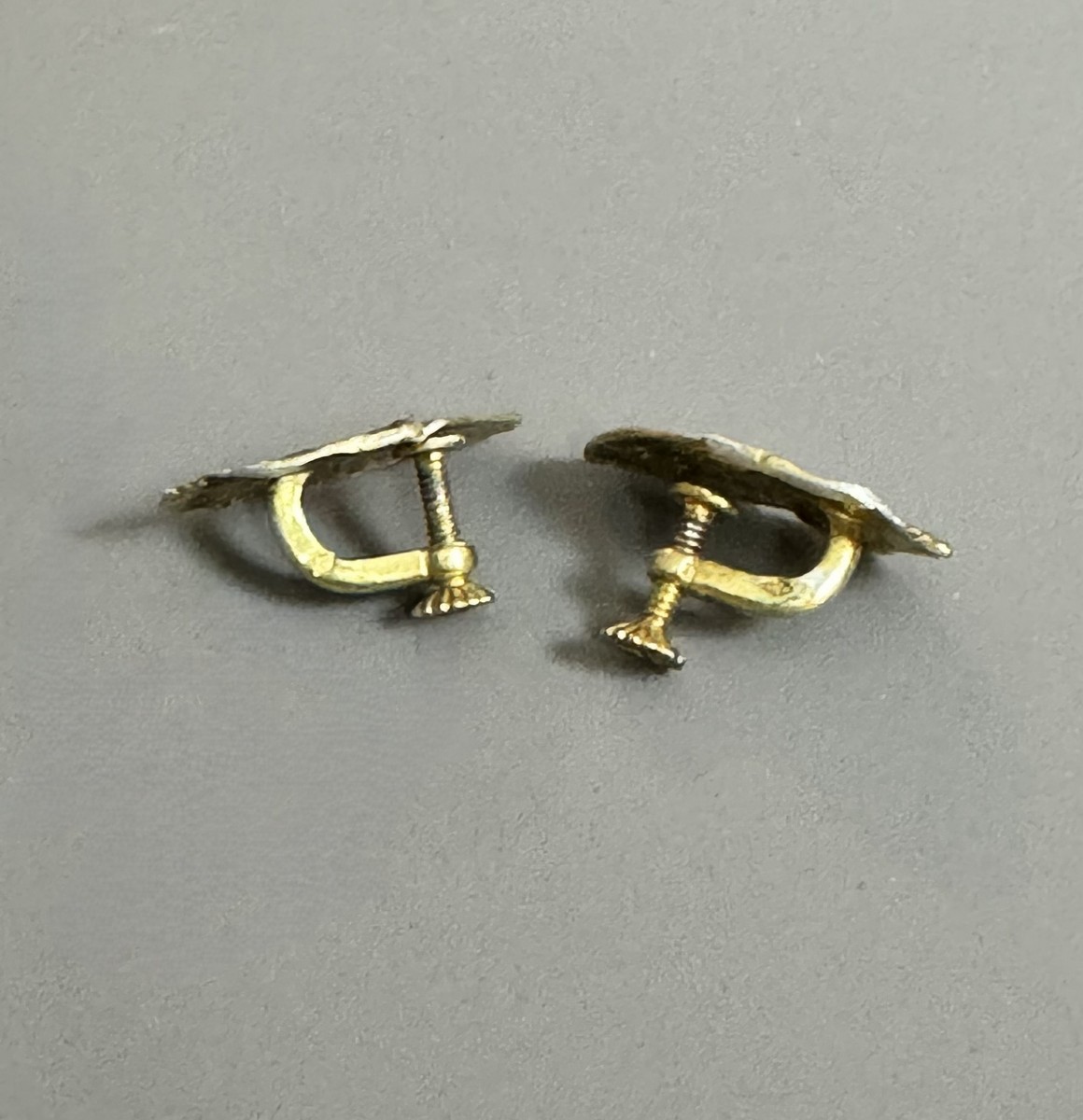 Gold-toned silver ornaments forming earrings.