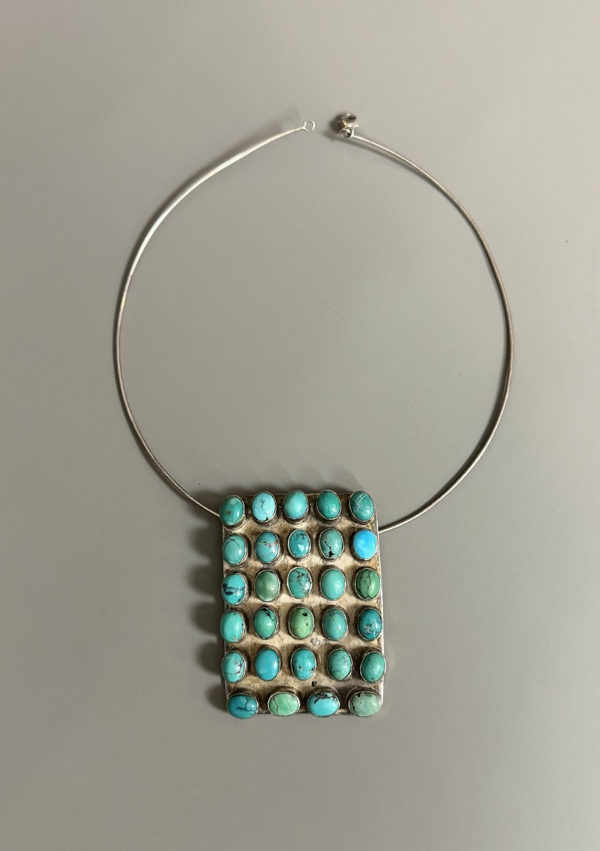 Batch 14 - MODERNIST NECKLACE IN 925 SILVER AND TURQUOISE