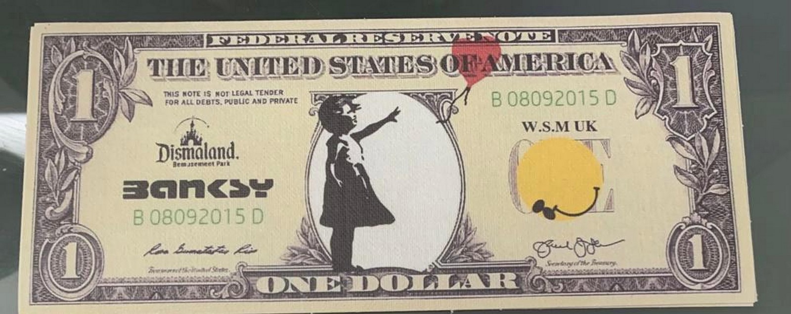 Certificate on the back of the work stating "This is to certify that the work described above is an original work of art by Dismal Mouse, Acquired during Dismaland, Banksy's event in Weston Super Mare in August-September 2015. Dimensions 27 x 12 cm