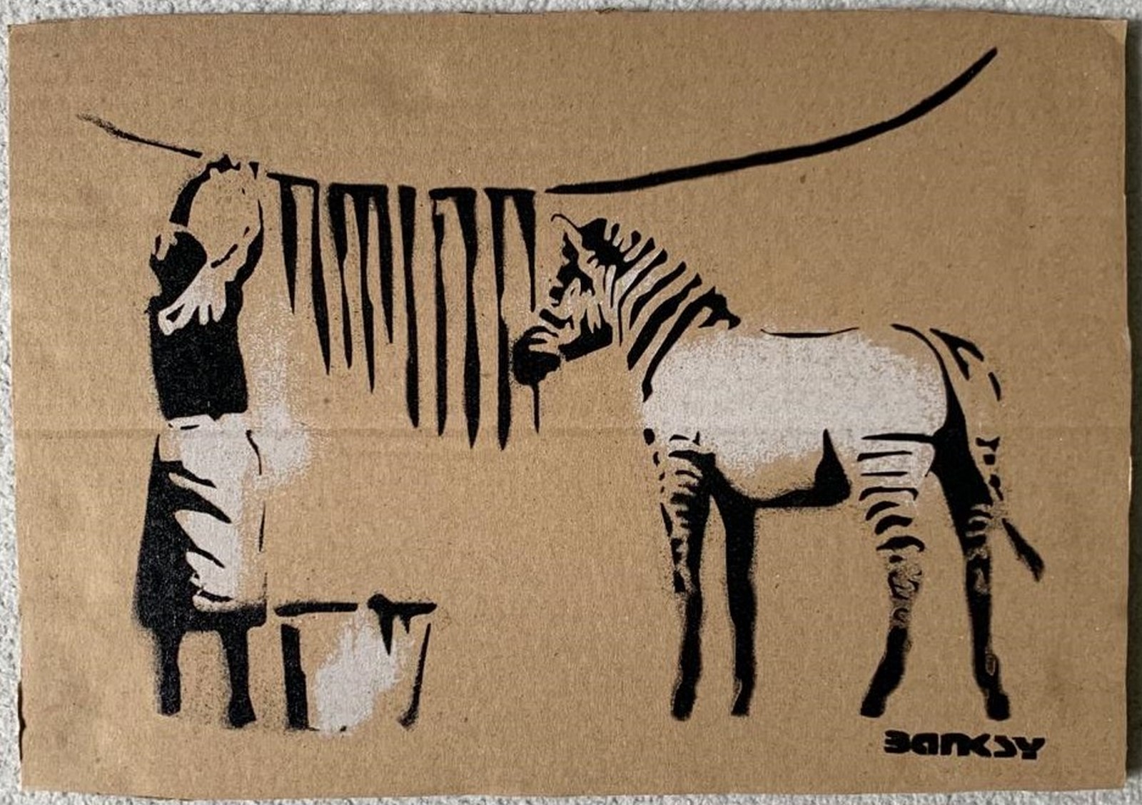 Spray paint and stencil on cardboard, signed and numbered 50 copies.