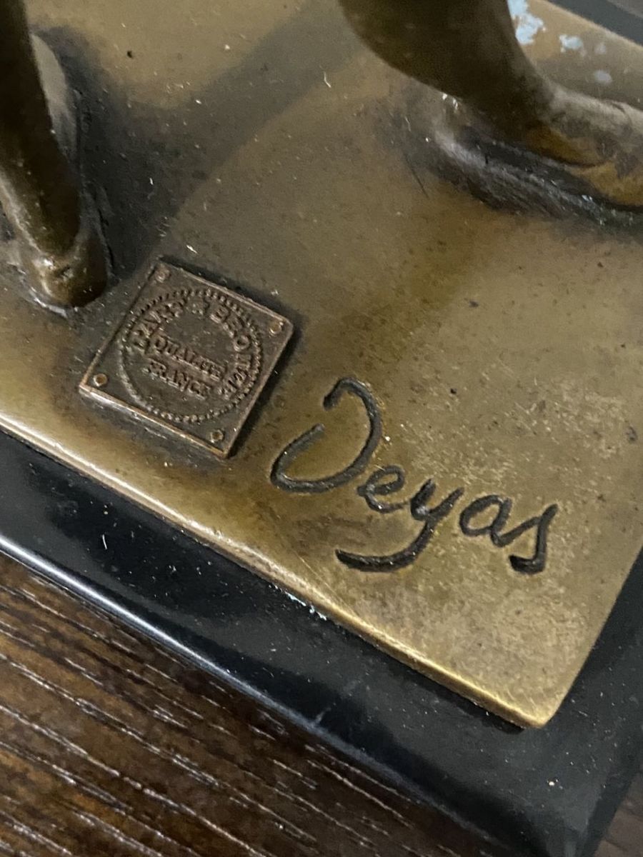 Patinated bronze sculpture on a marble base. Posthumous edition. Stamped by the foundry. Good condition, 20 x 9 x 7 cm.
