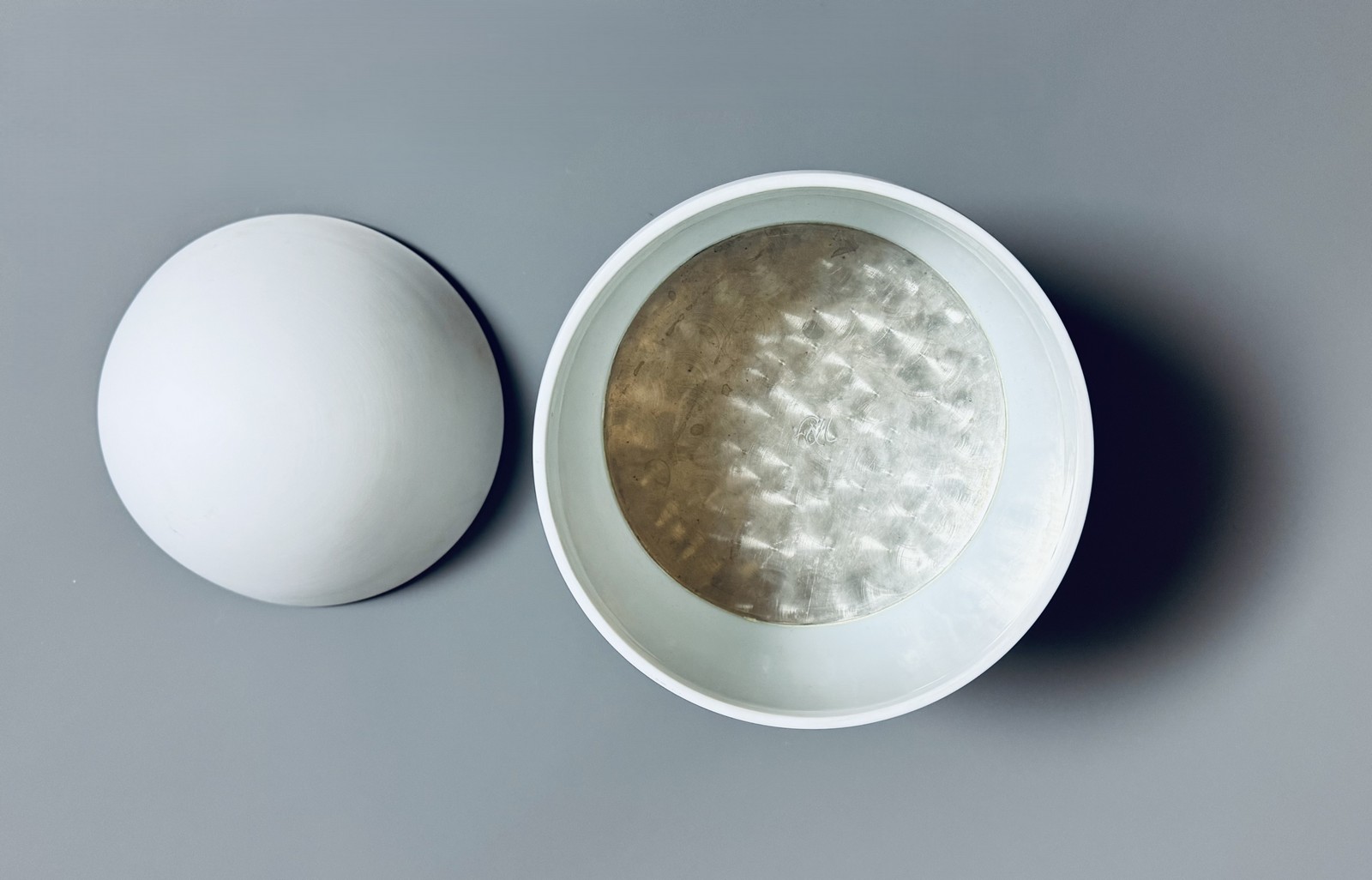 Bibliography: Robert Rosenblum, Les Lalanne, Éditions Skira, Geneva, 1991, p.47 Jean-Paul Midant, Sèvres la Manufacture au XXe siècle, Michel Aveline Éditeurs, Paris, 1992, p.236 Daniel Marchesseau, Les Lalanne, Éditions Flammarion, Paris, 1998, p.88-89 Daniel Abadie, Lalanne(s), Éditions Flammarion, Paris, 2008, p.94-95 François-Xavier LALANNE & Manufature Nationale de Sèvres (1927-2008) A biscuitware and metal ice bucket “Oeuf” by François-Xavier Lalanne, monogrammed and stamped – model created in 1968 Height : 9.44 in.