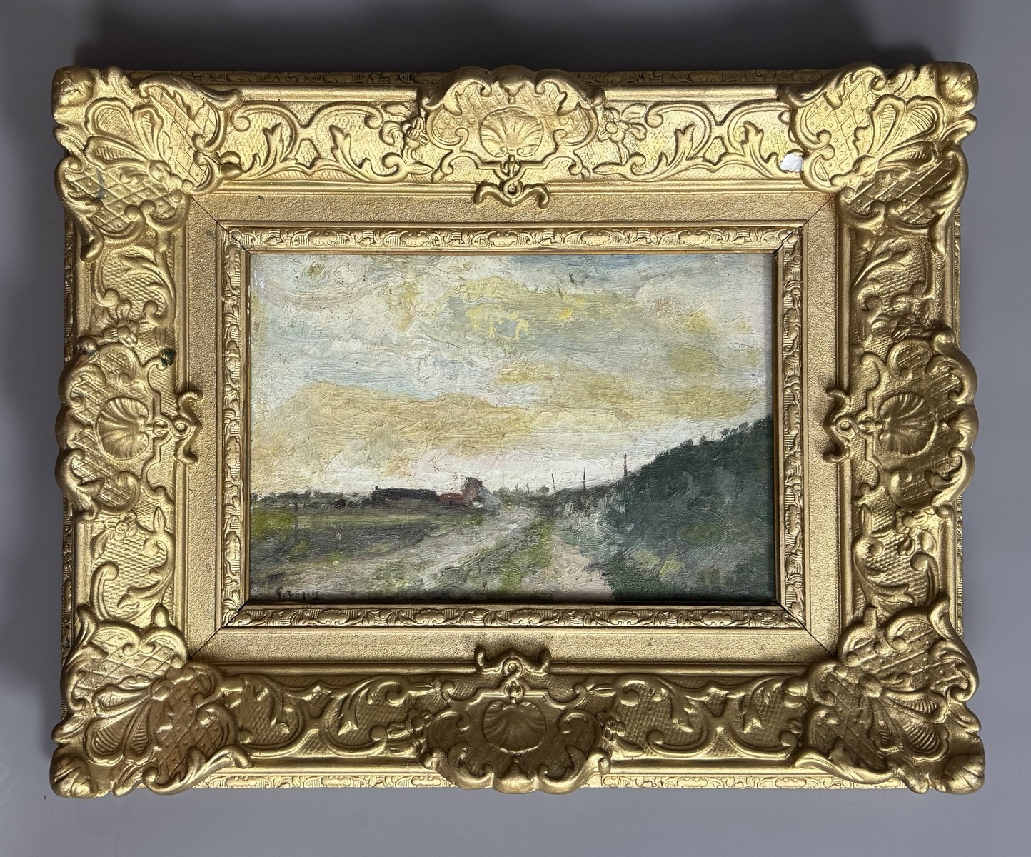 Oil on panel, signed lower left.