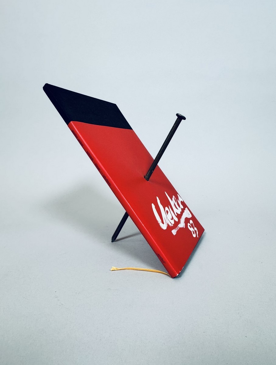 The book pierced with a nail is: Kölnisch-Klause-Phobien, Günther Uecker, Wolfgang Wangler, Verlag der Zeitschrift Symbol, Cologne 1983, bound, linen, with partial dust jacket.
