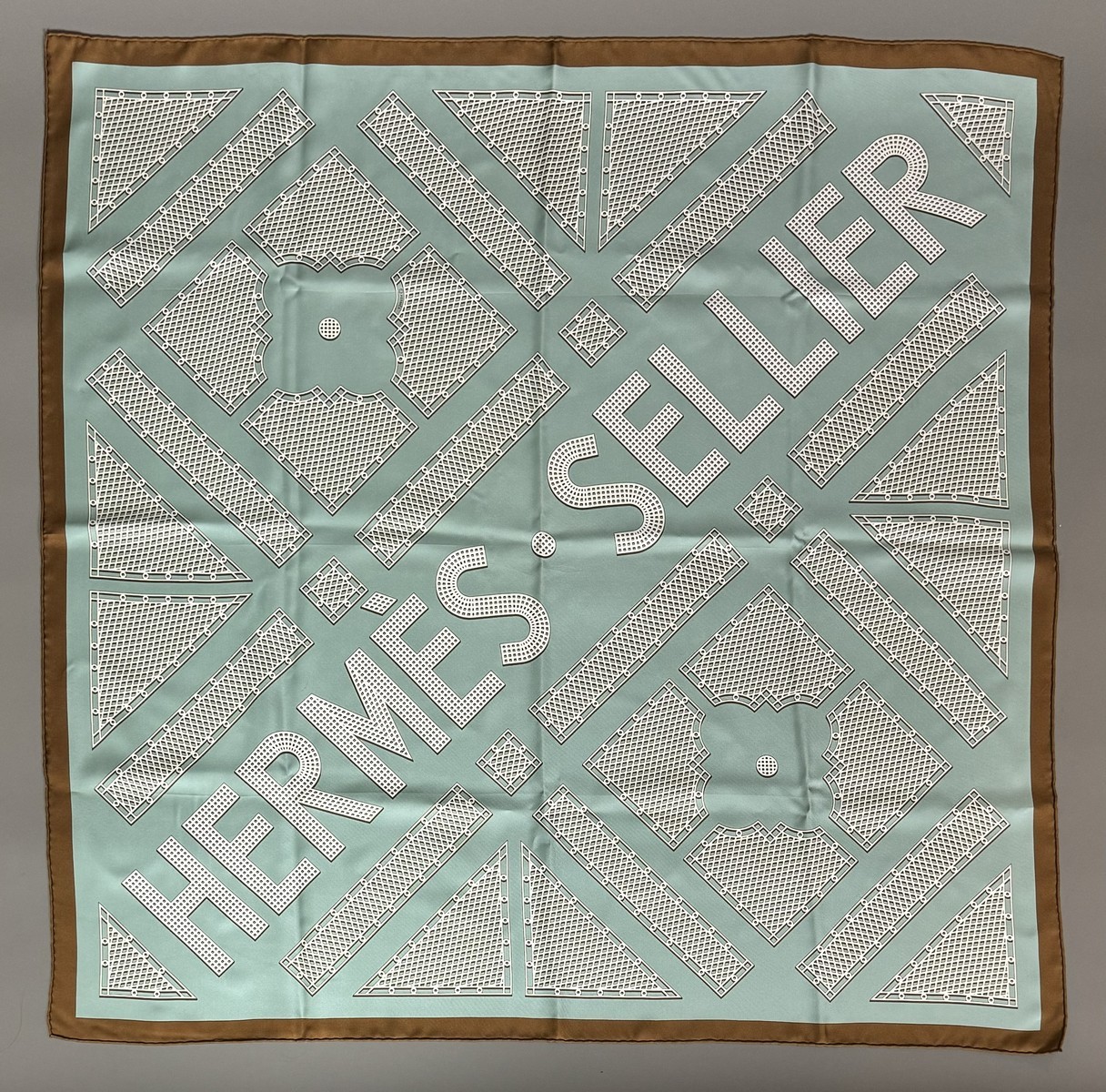 HERMES Paris. Silk twill scarf, “HERMES-SELLIER” model. French gardens. 90 x 90 cm (used condition).