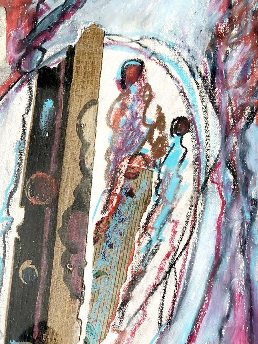 Pastel and collage on paper, hand-signed by the artist. Unique work in good condition. Dimensions of the work: 56 x 40 cm. Dimensions of the frame: 78 x 62 cm. Bibliography: Jacques Doucet, Parcours 1977-1994, catalogue raisonné, volume III, Galilée, Paris 1999, reproduced as no. 404, p. 49.