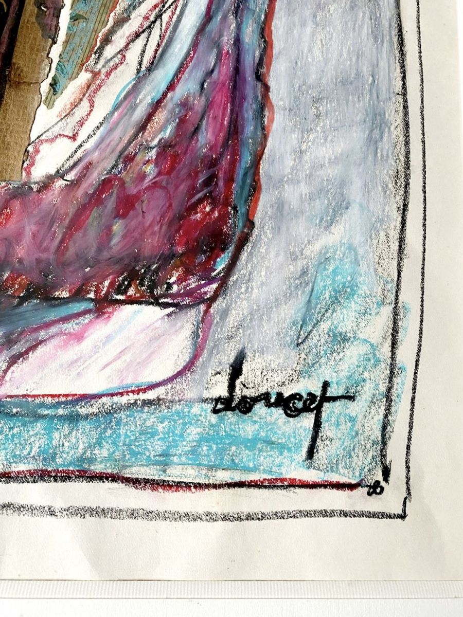 Pastel and collage on paper, hand signed by the artist. Unqiue artwork in good condition. Ref.: Jacques Doucet, Journey 1977-1994, catalog raisonné, volume III, Galilée, Paris 1999, reproduced under n° 404, p. 49. Artwork dimensions: 56 x 40 cm. Frame dimensions: 78 x 62 cm