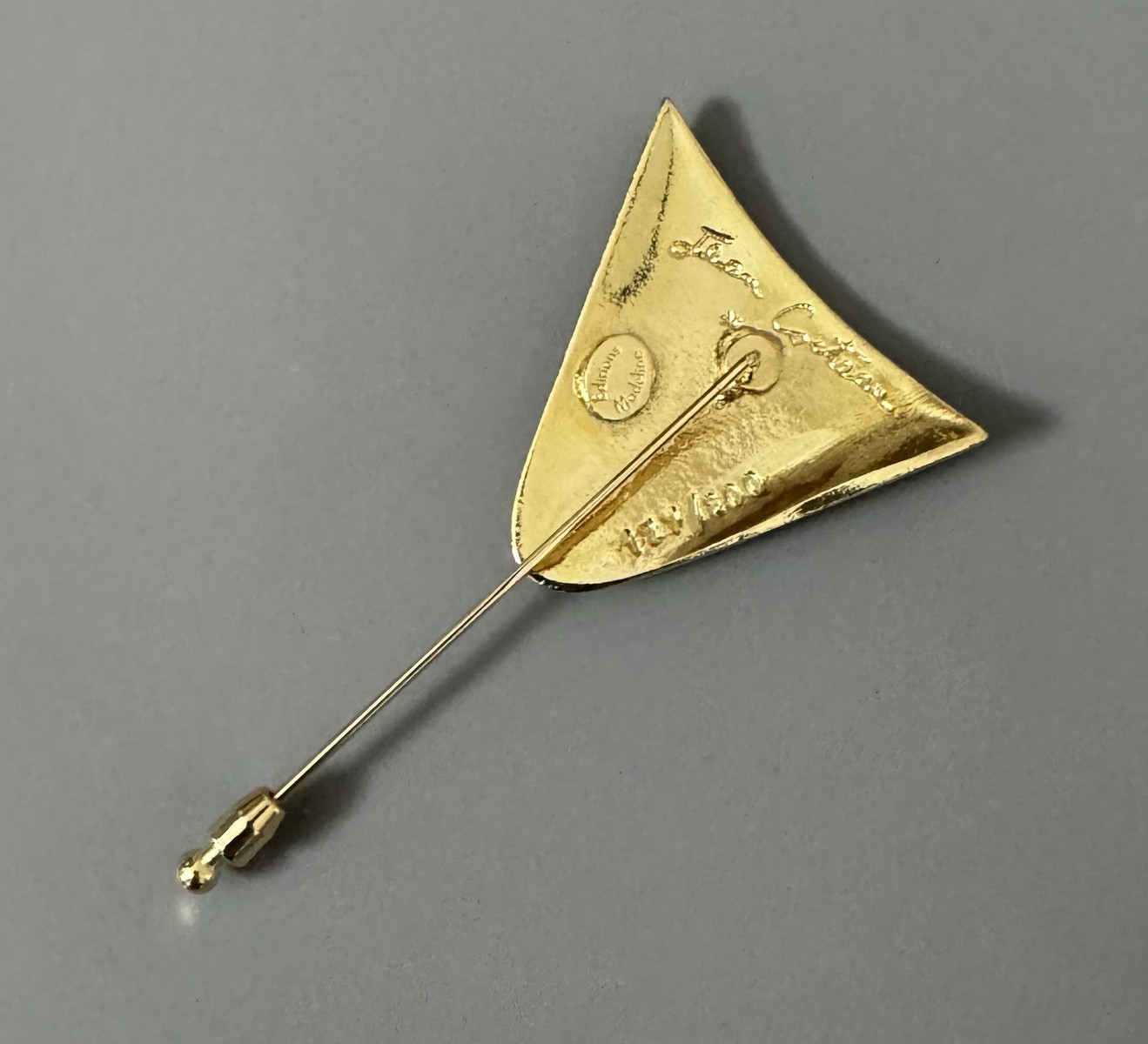 Épingle en bronze doré email noir et rouge. Signé « Jean Cocteau » au dos. Numéroté 177/200.