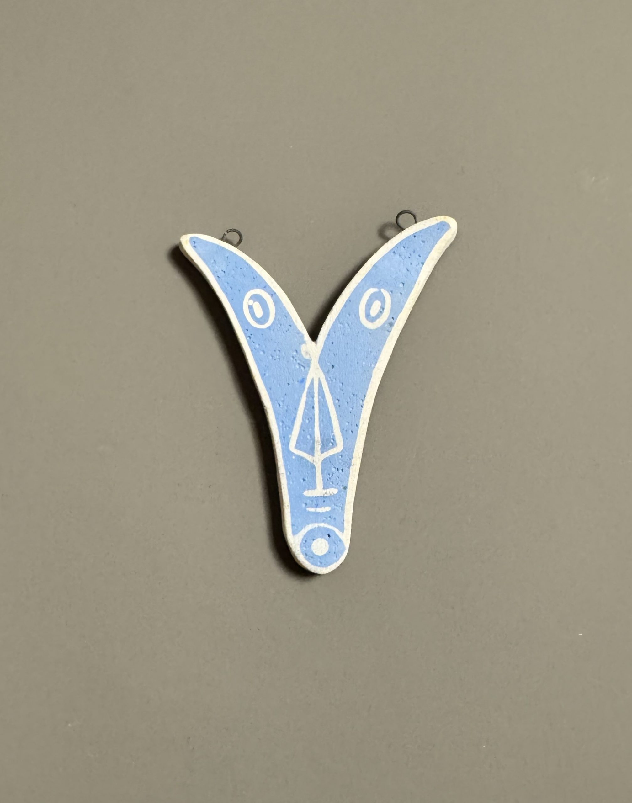 Pendant made of a cut-out ceramic plate in white and blue inlaid earth