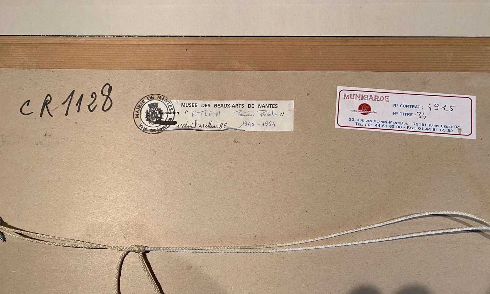 Pastel on paper. Unique piece, hand-signed. Good condition, 37 x 27 cm. Bibliography: Catalogue of the Atlan retrospective, first period 1940-1954, Nantes, Musée des Beaux-Arts, April 11-May 31, 1986, repr. p. 104. Jacques Polieri, Atlan, catalogue raisonné of the complete works, Gallimard, 1996, no. 1128, repr. p. 467.