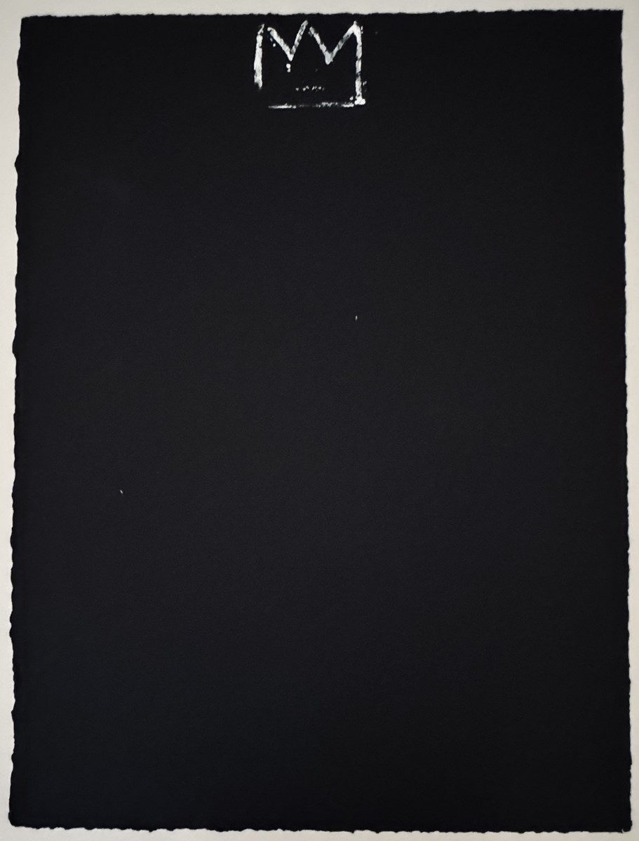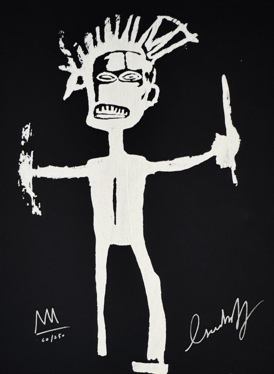 Lot 215 - Jean-Michel BASQUIAT (1960-1988), After. Standing Figure, c.1982. Lithograph on BFK Rives paper. Signed, numbered in an edition of 250, in white marker and enhanced with a crown design on the back of the lithograph.