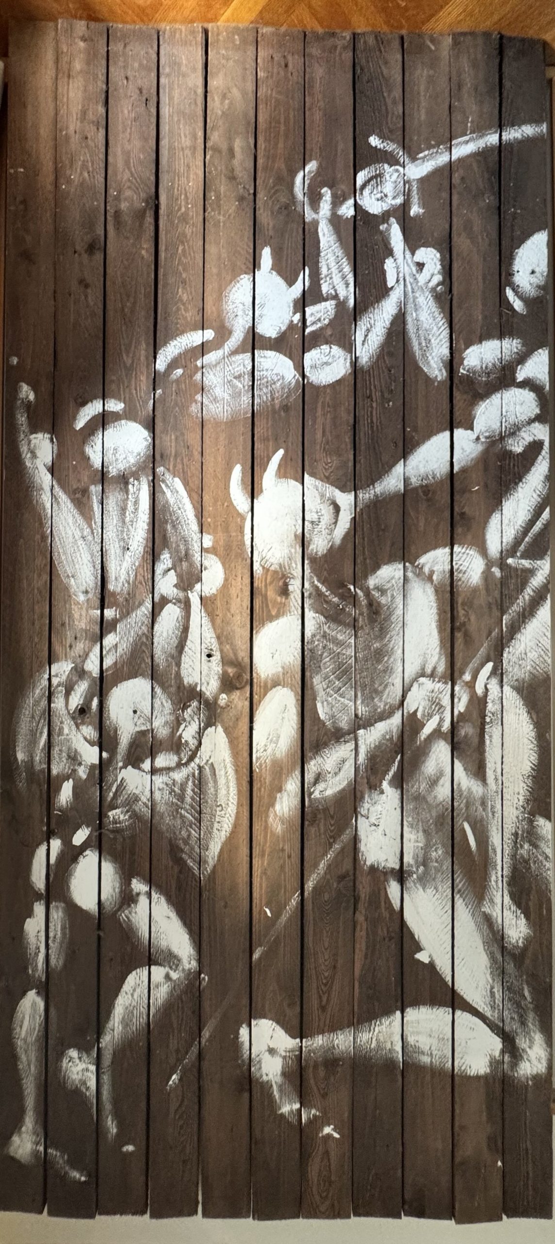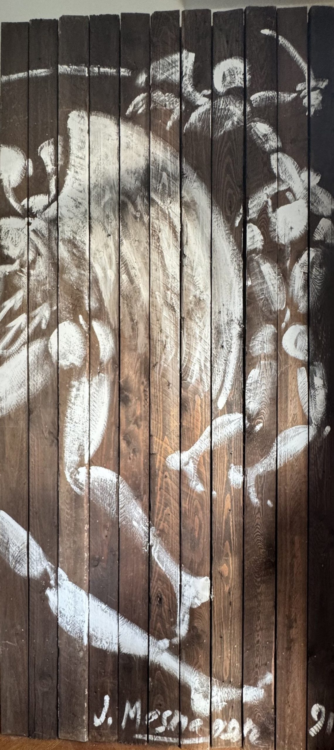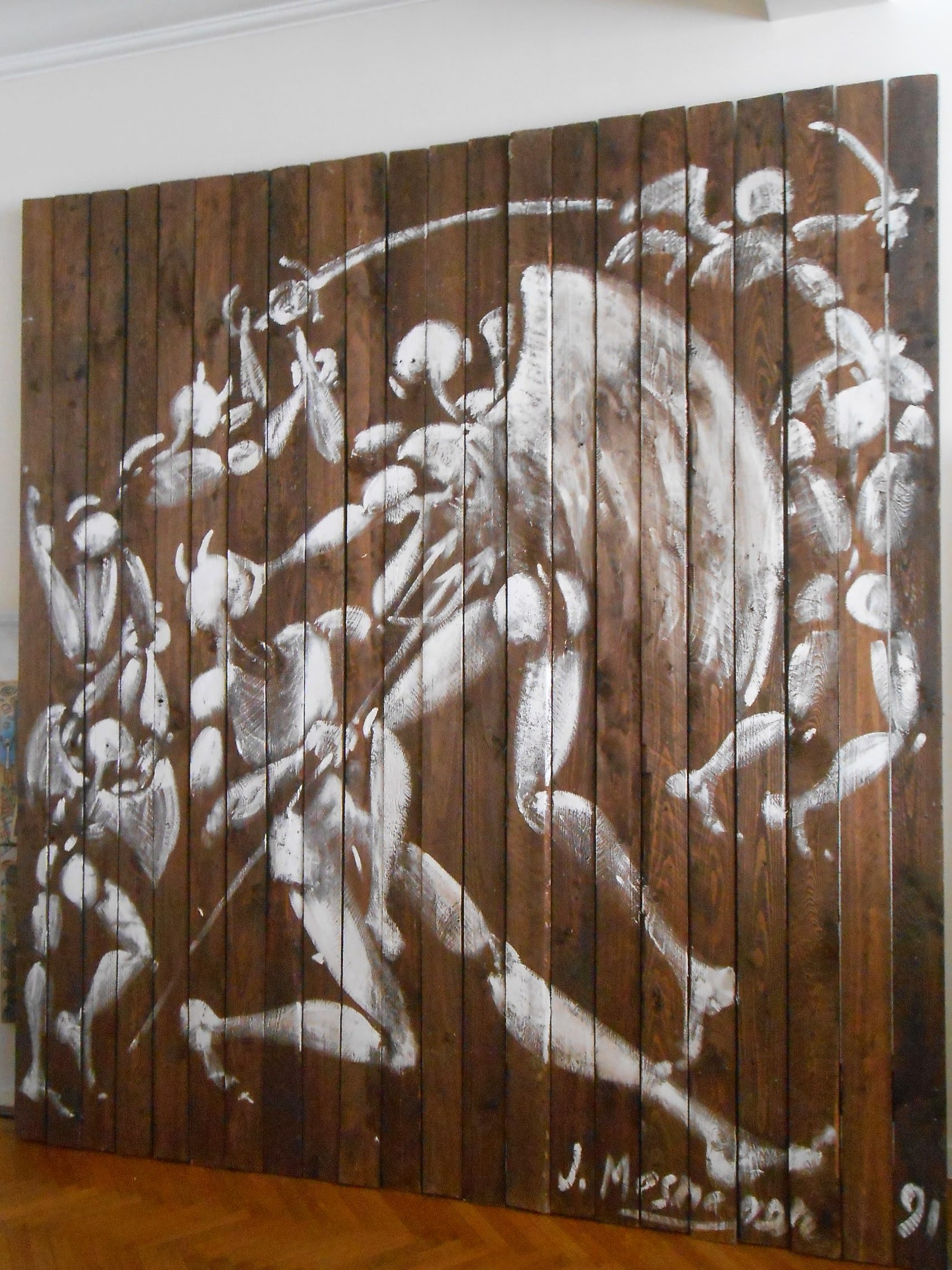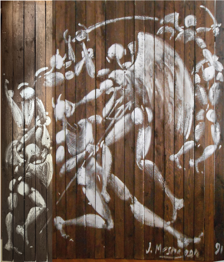 Jérôme MESNAGER (Born in 1961) Untitled, 1991. Acrylic on wood panel. Signed and dated lower right. 243 x 220 cm