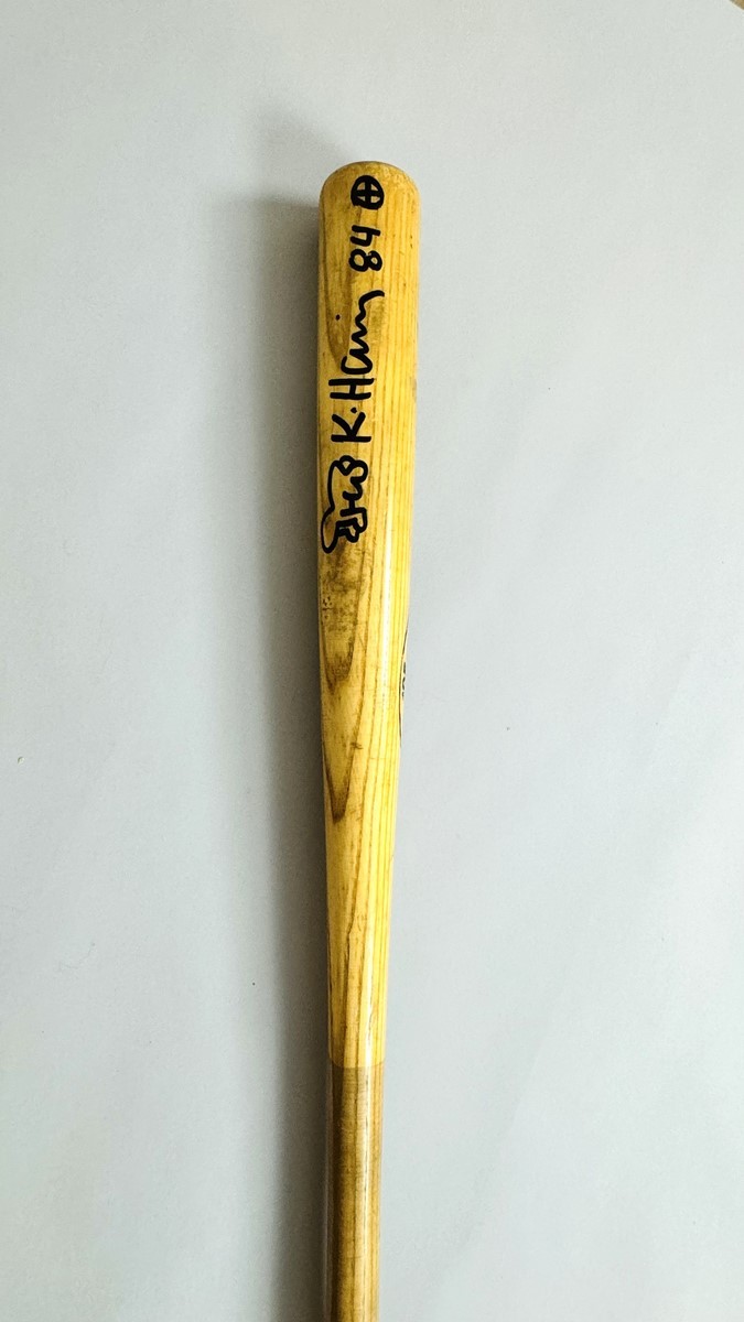 Original black felt pen drawing on baseball bat. Signed and dated “84”.