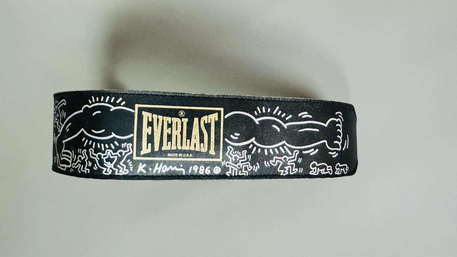 Original white marker drawing on Everlast leather boxing belt. Signed and dated "86".