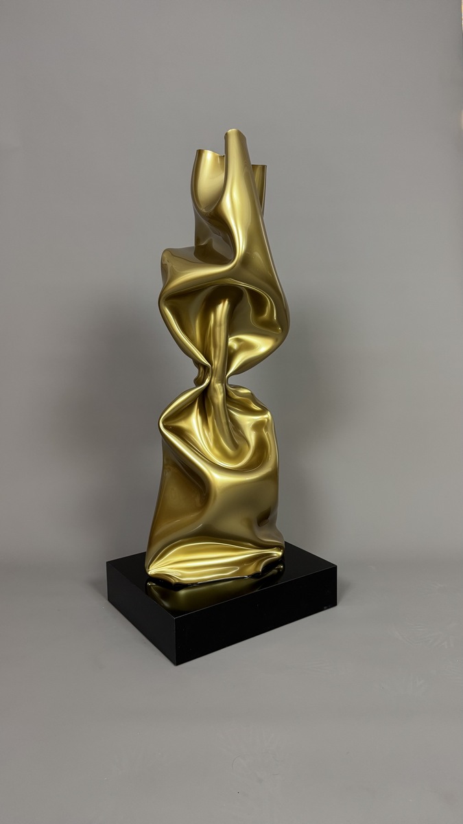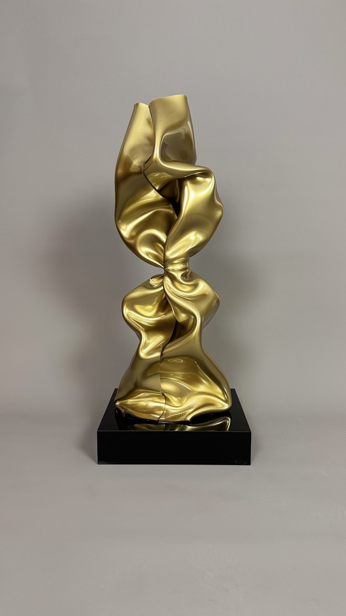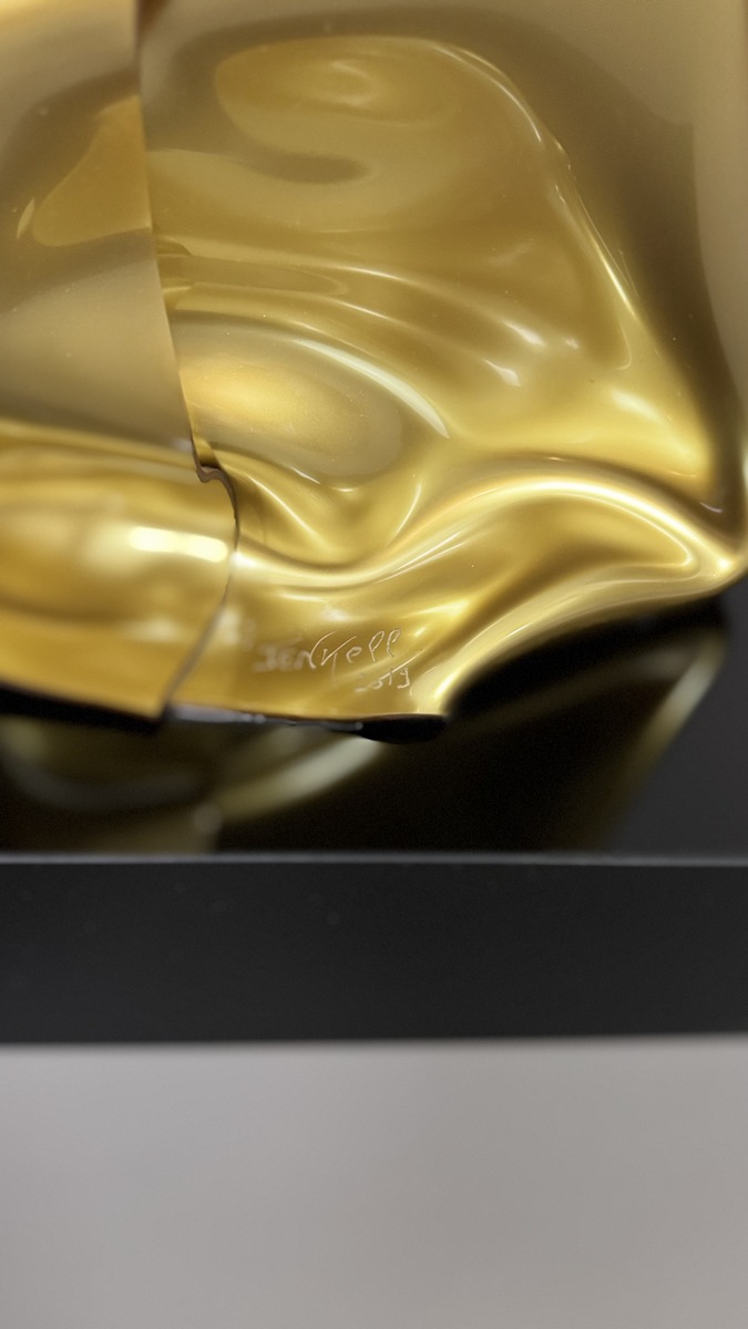Gold Altuglas sculpture. Signed "Jenkell". Numbered 1/1 at the base. Unique piece.