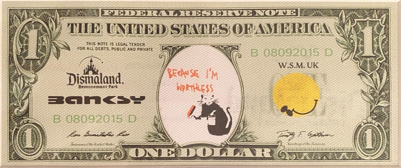 Screenprint on canvas depicting a banknote