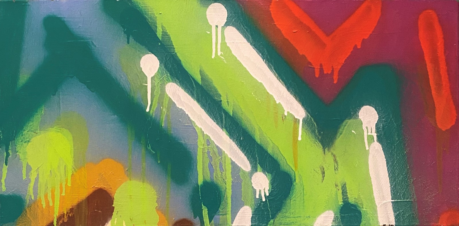 Acrylic and spray paint on canvas, signed and dated on the reverse