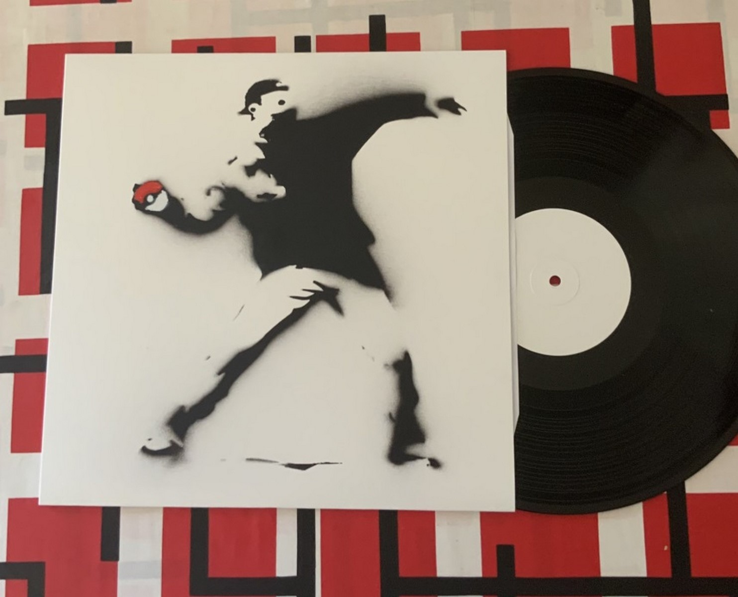 Spray paint on record sleeve; stamped and numbered 52/100 on the reverse