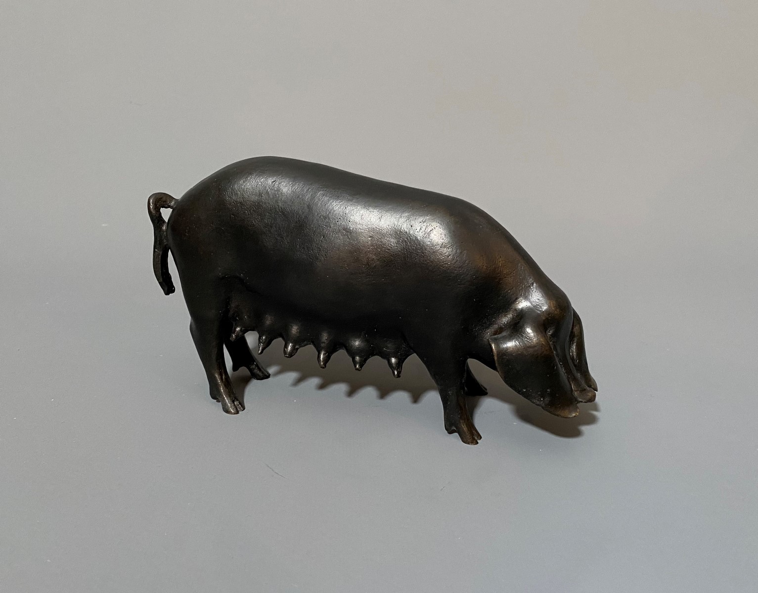 A “Sow” black patinated bronze sculpture by François Pompon. Signed “Pompon” and stamped “cire perdu C. Valsuani” (“lost wax Valsuani) under the belly.