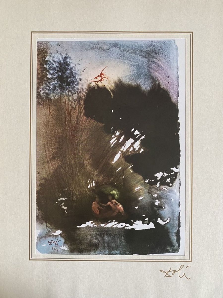 Color lithograph on 170 gsm paper with mat. Signed in the plate, unnumbered. Dali's signature printed on the mat. Printed by the Rizzoli Editore lithography workshop in Milan. Good condition, 35 x 27 cm (paper), 40 x 30 cm (mat).