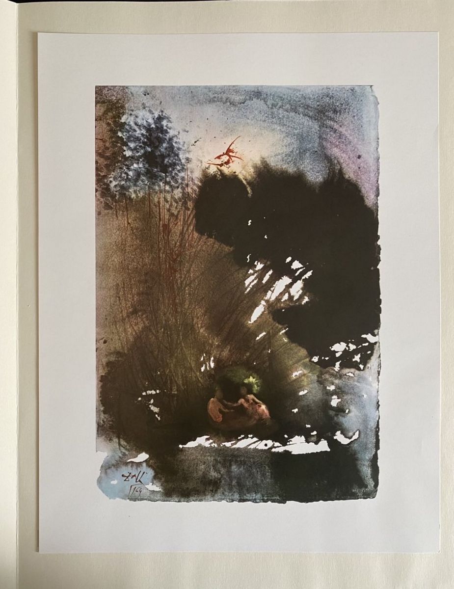 Color lithograph on 170 gr paper with passepartout. Plate signed, not numbered. Dali's signature printed on passepartout. Printed by Rizzoli Editore lithography workshop in Milan. Good condition, 35 x 27 cm (paper), 40 x 30 cm (passepartout).