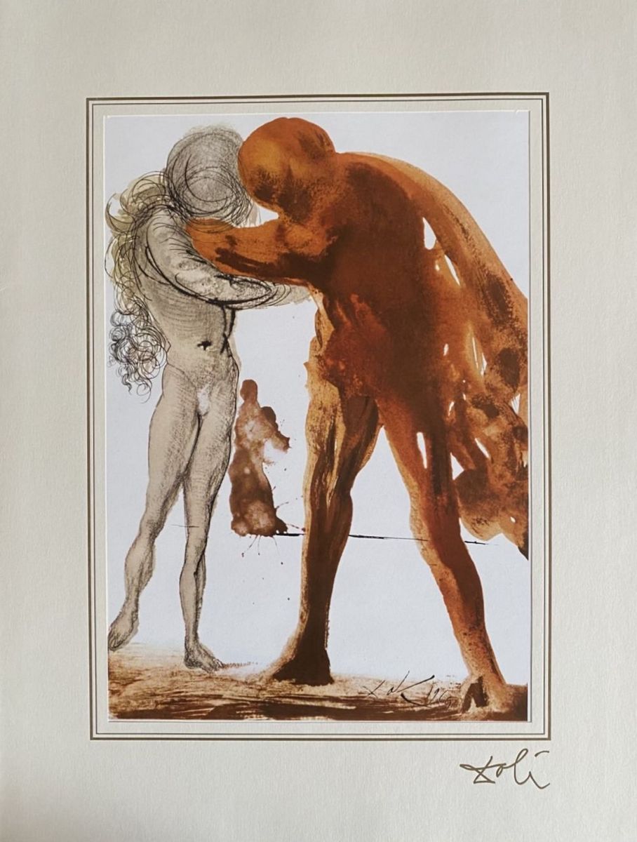 Color lithograph on 170 gr paper with passepartout. Plate signed, not numbered. Dali's signature printed on passepartout. Printed by Rizzoli Editore lithography workshop in Milan. Good condition, 35 x 27 cm (paper), 40 x 30 cm (passepartout).