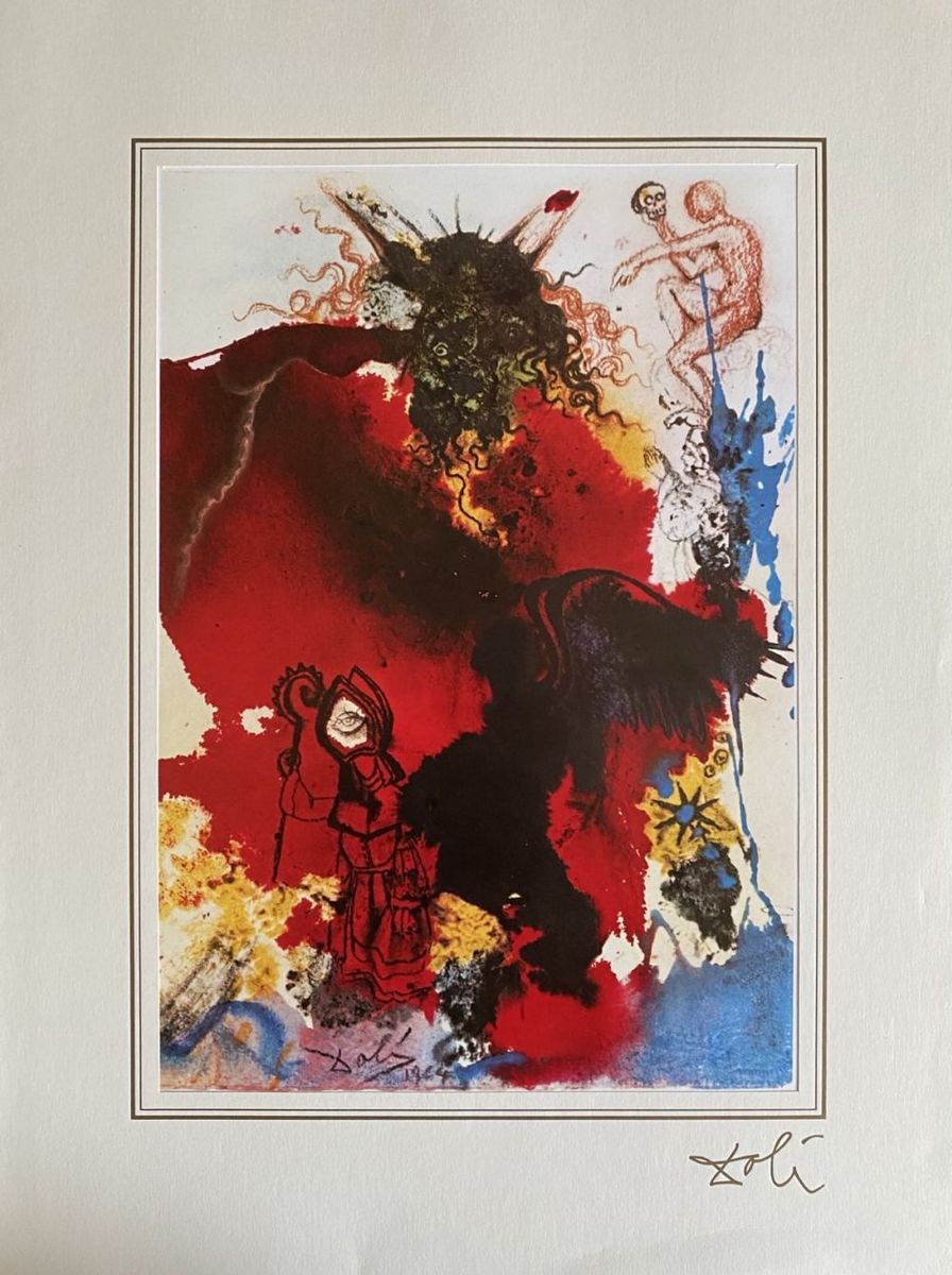 Color lithograph on 170 gr paper with passepartout. Plate signed, not numbered. Dali's signature printed on passepartout. Printed by Rizzoli Editore lithography workshop in Milan. Good condition, 35 x 27 cm (paper), 40 x 30 cm (passepartout).