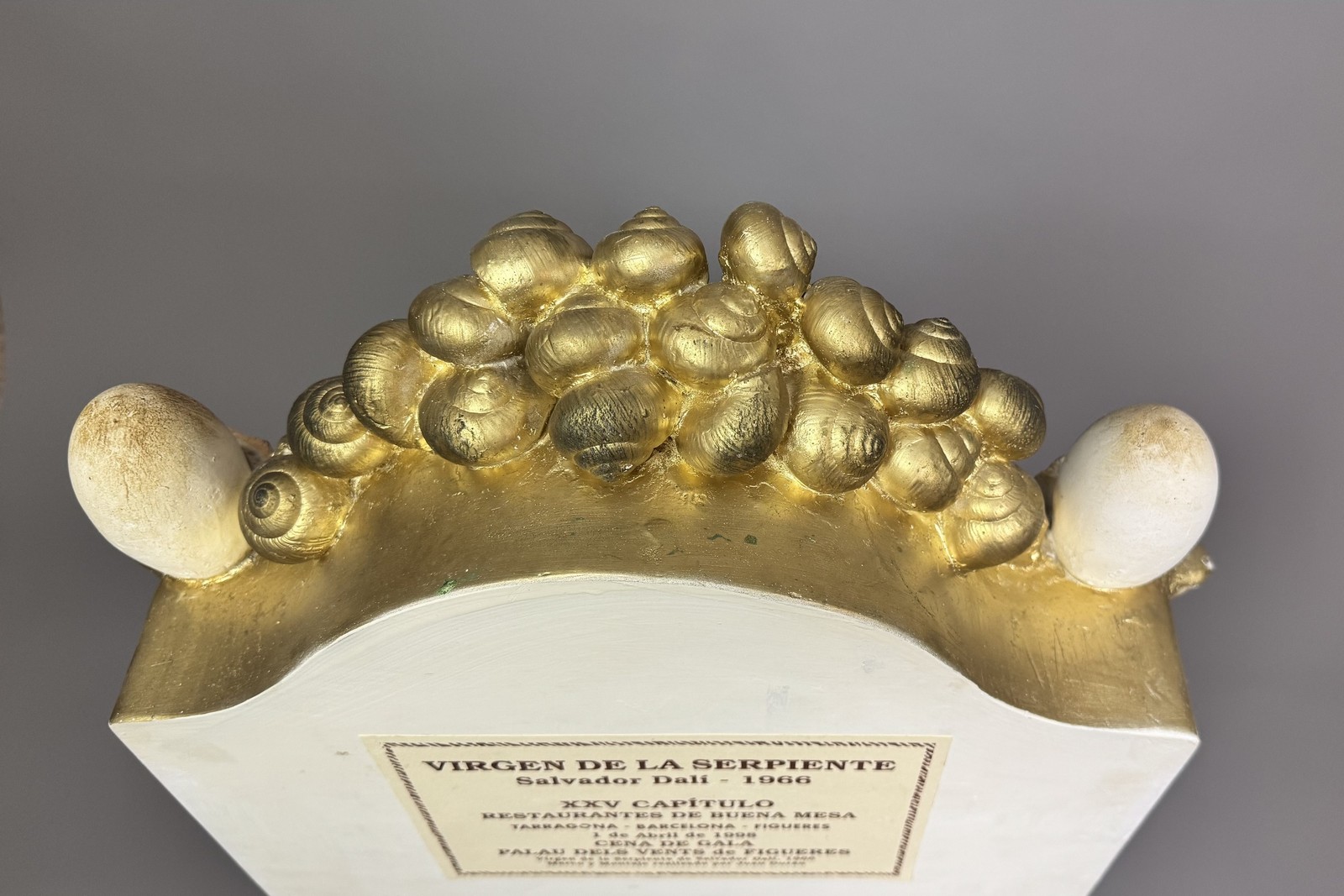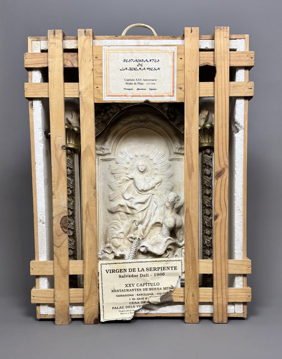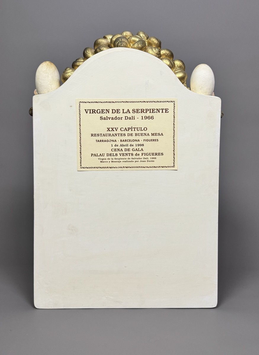 In its original case. Good condition. The work was presented and acquired at the sale organized during the 25th Chapter of the Association 'Restaurantes de Buena Mesa, Espagnes' at the Figueras Auction House in 1998. THE MADONNA WITH THE SERPENT, 1966.