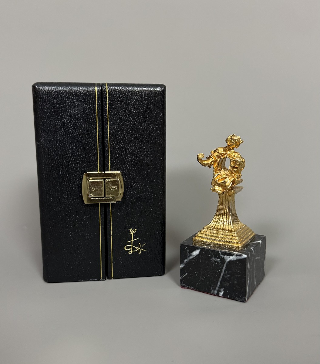 Gilt bronze on a black marble base. Signed "Dali" on the back. Numbered A-12/300.