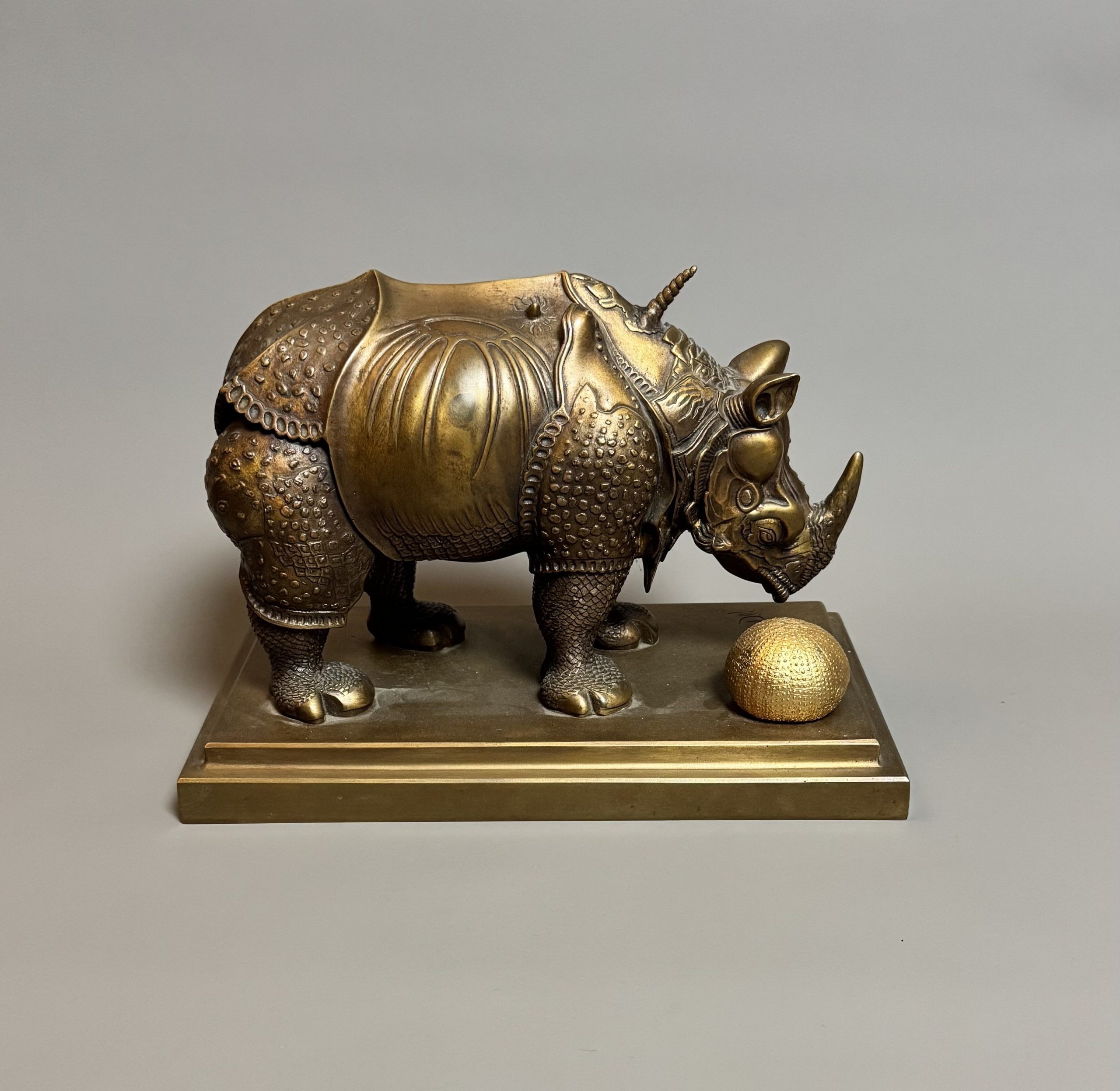 'Rhinoceros dressed in lace' Bronze with brown and gilded patina. 1956.