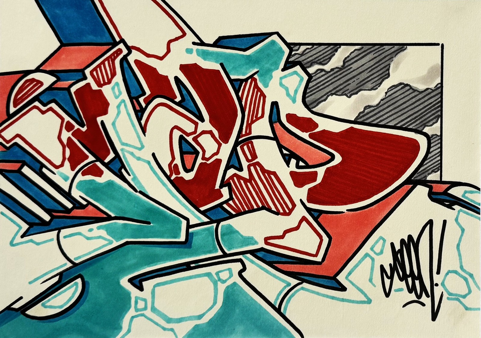 Marker on paper, signed.