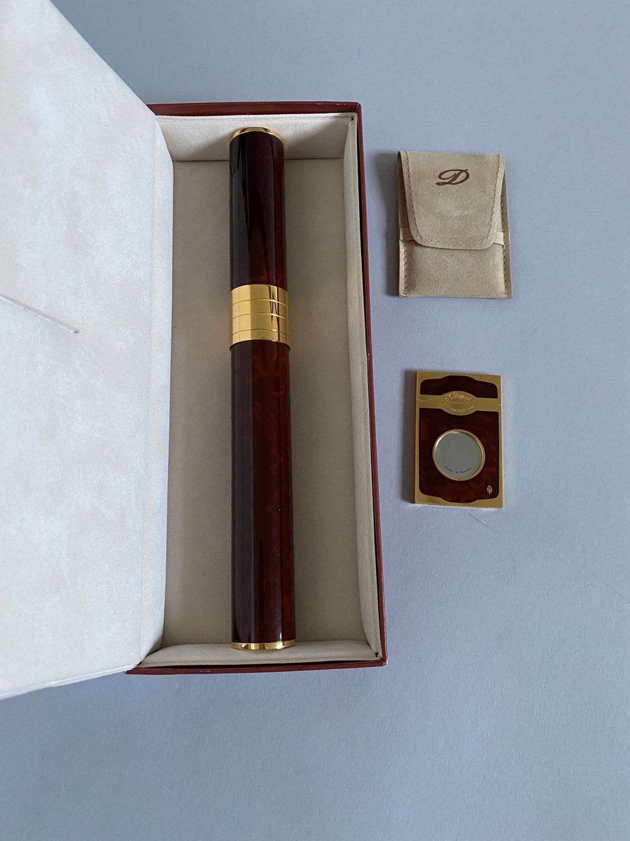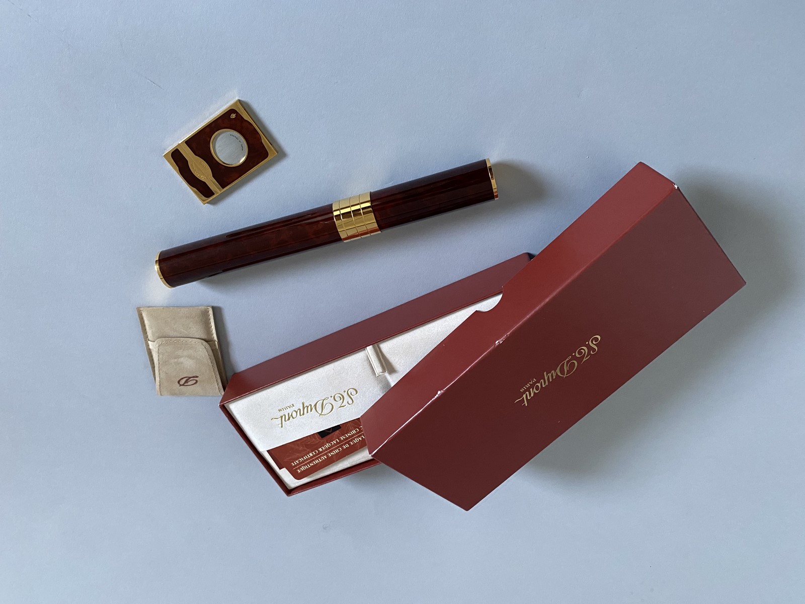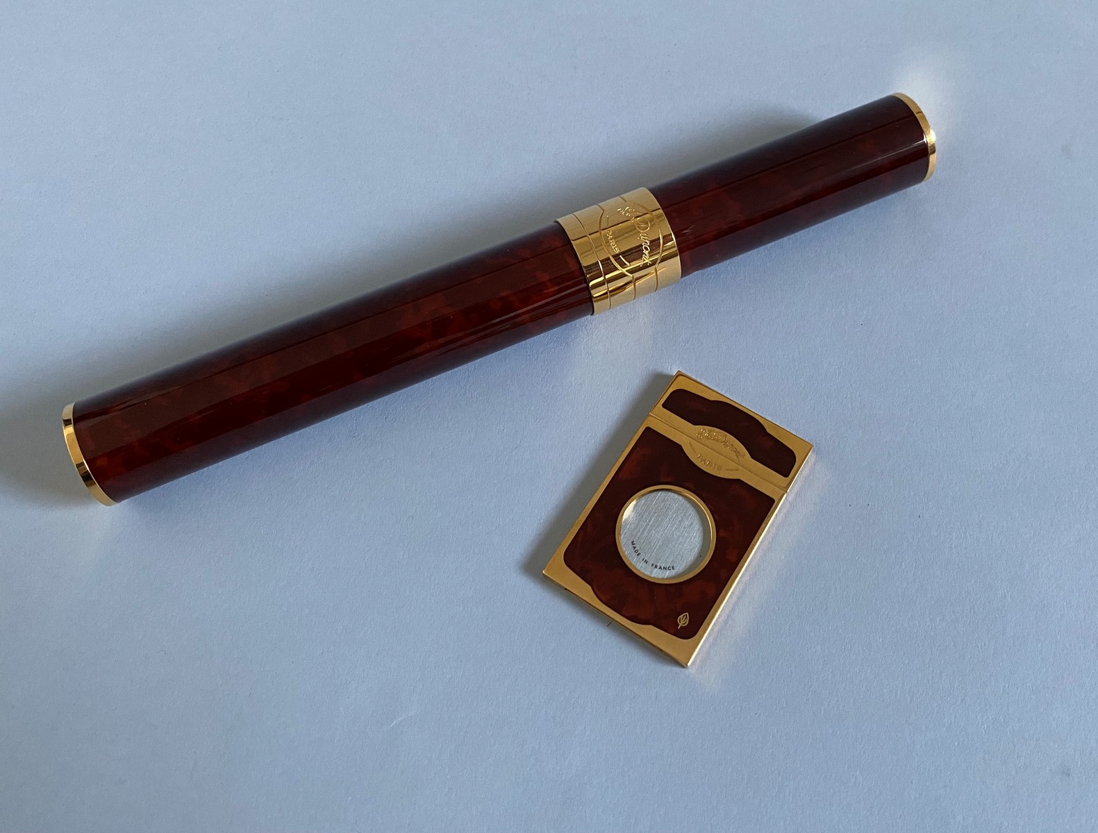Cigar case and cigar cutter in Chinese lacquer and gilded metal.