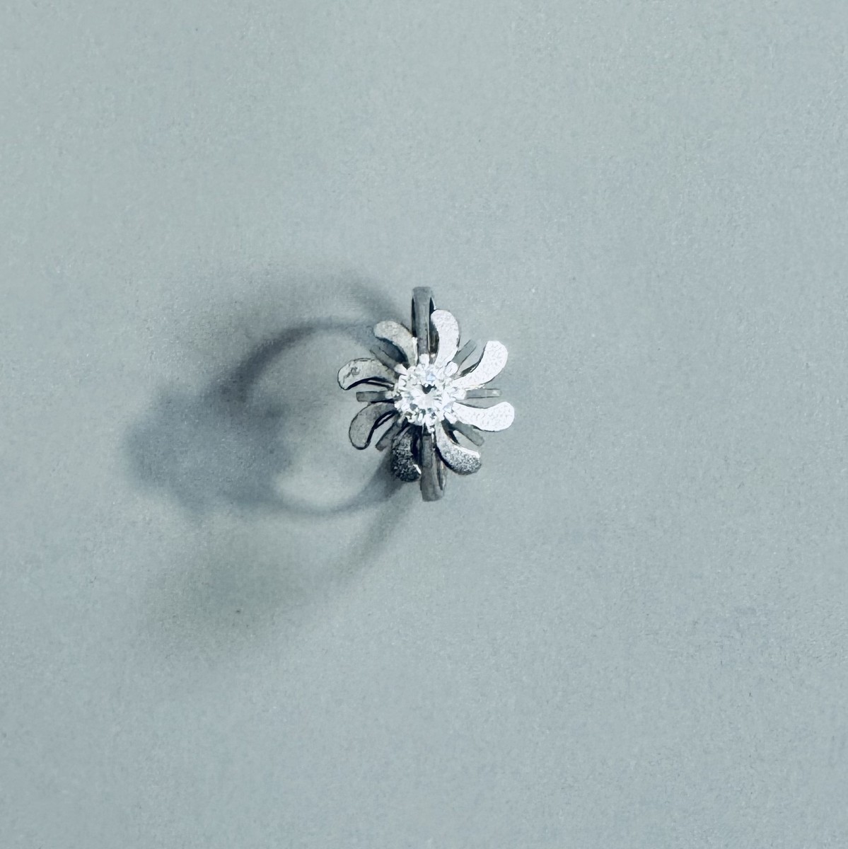 1970s WORK. Platinum ring with floral motif adorned with a central diamond of 0.33 carats (approximately).