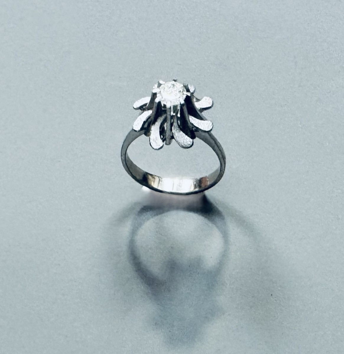 Batch 52 - 1970s WORK. Platinum ring with floral motif adorned with a central diamond of 0.33 carats (approximately).