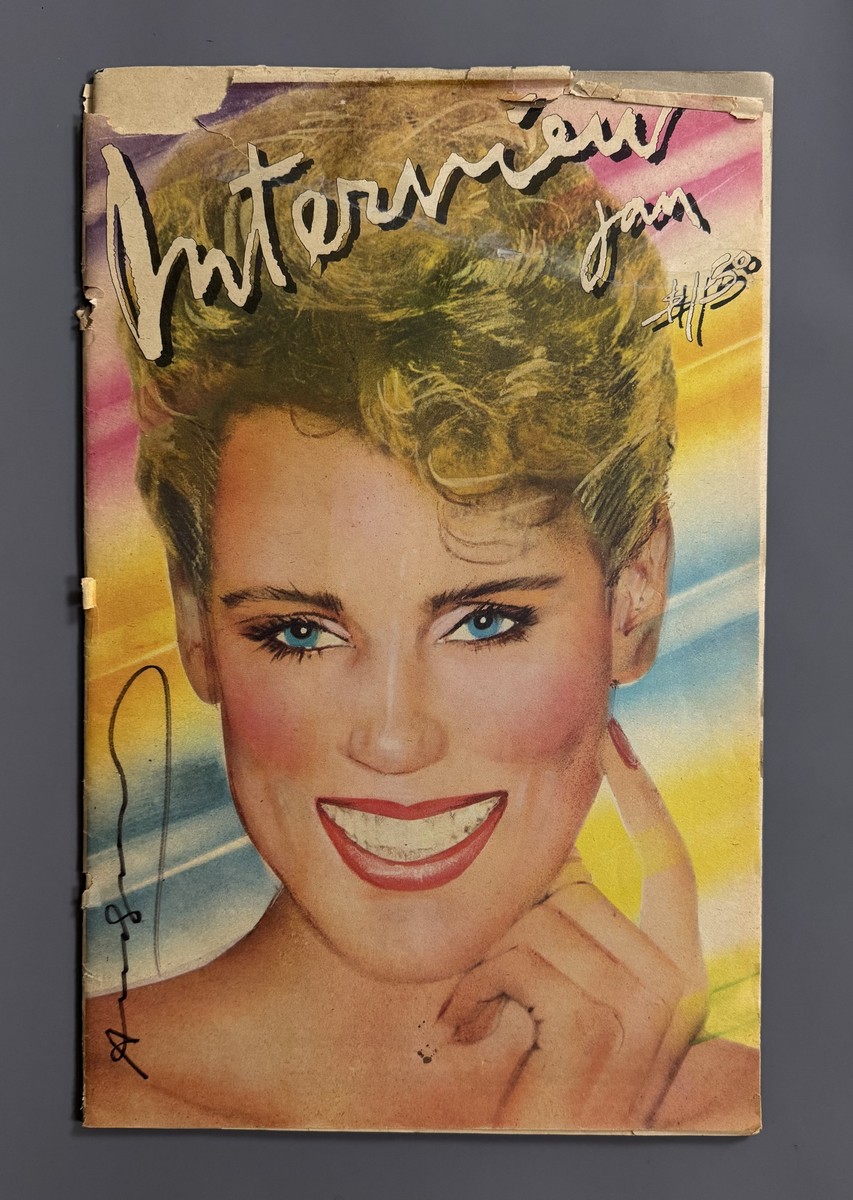 Magazine INTERVIEW 1979. Magazine créé par Andy WARHOL en 1969. Couverture : Linda HUTTON . Porte une signature au feutre en couverture Attribué à Andy Warhol. En l’état.
