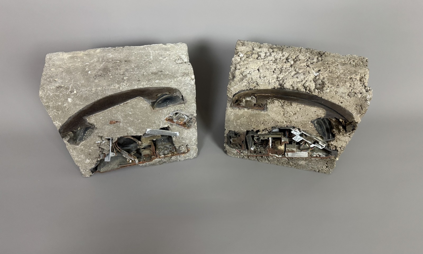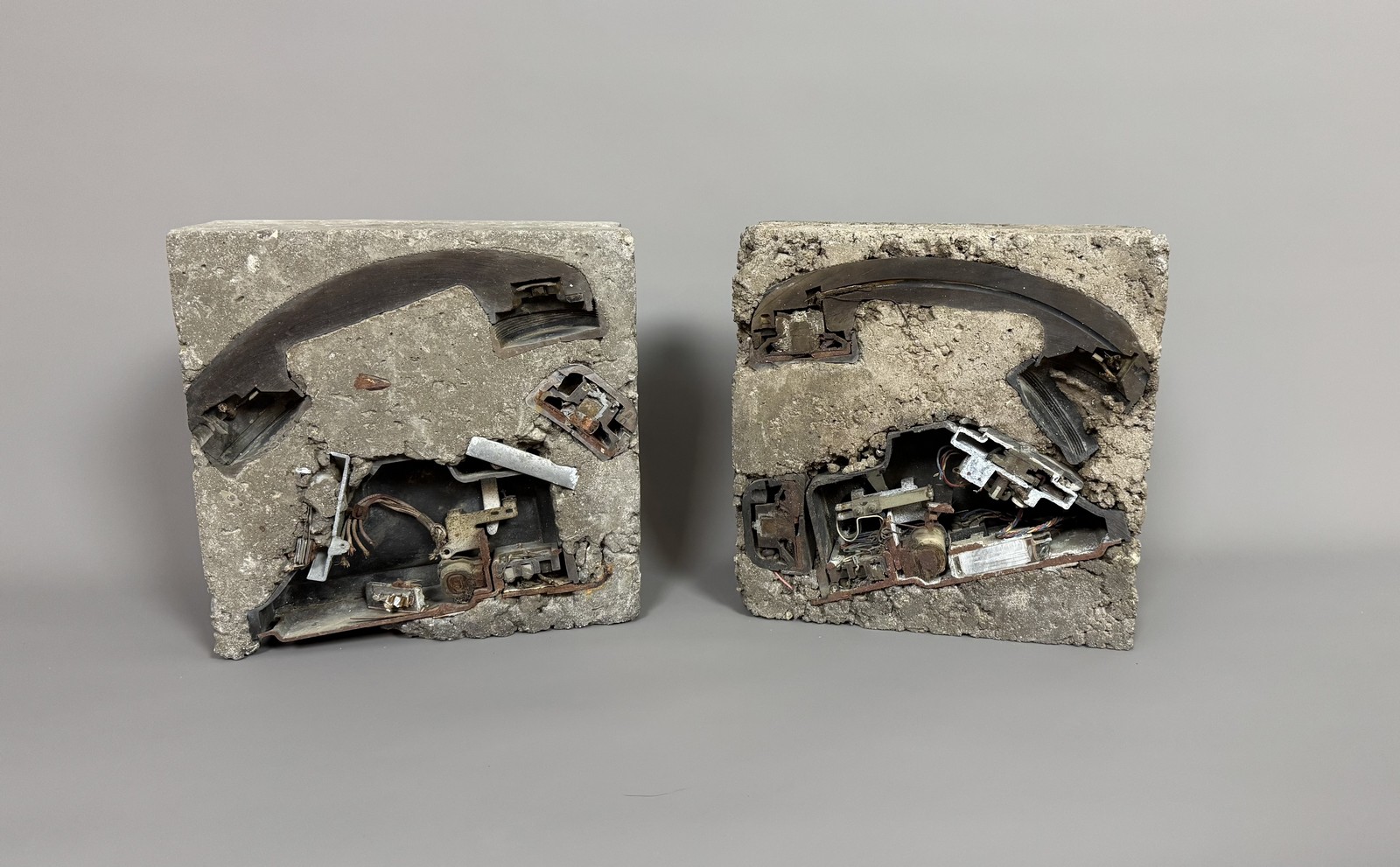 Deux sculptures, téléphone découpé inclus dans du béton. Signé « Arman ». Édition à 30 exemplaires (tous différents).