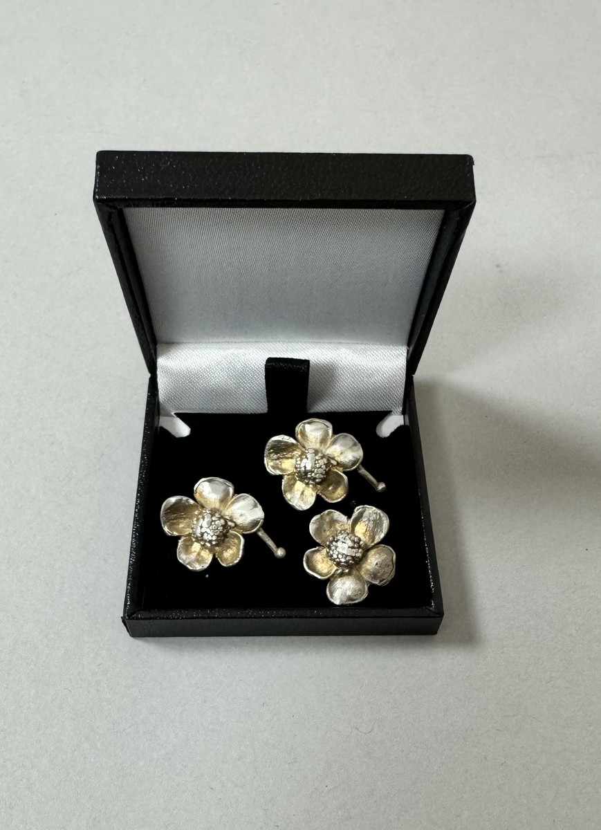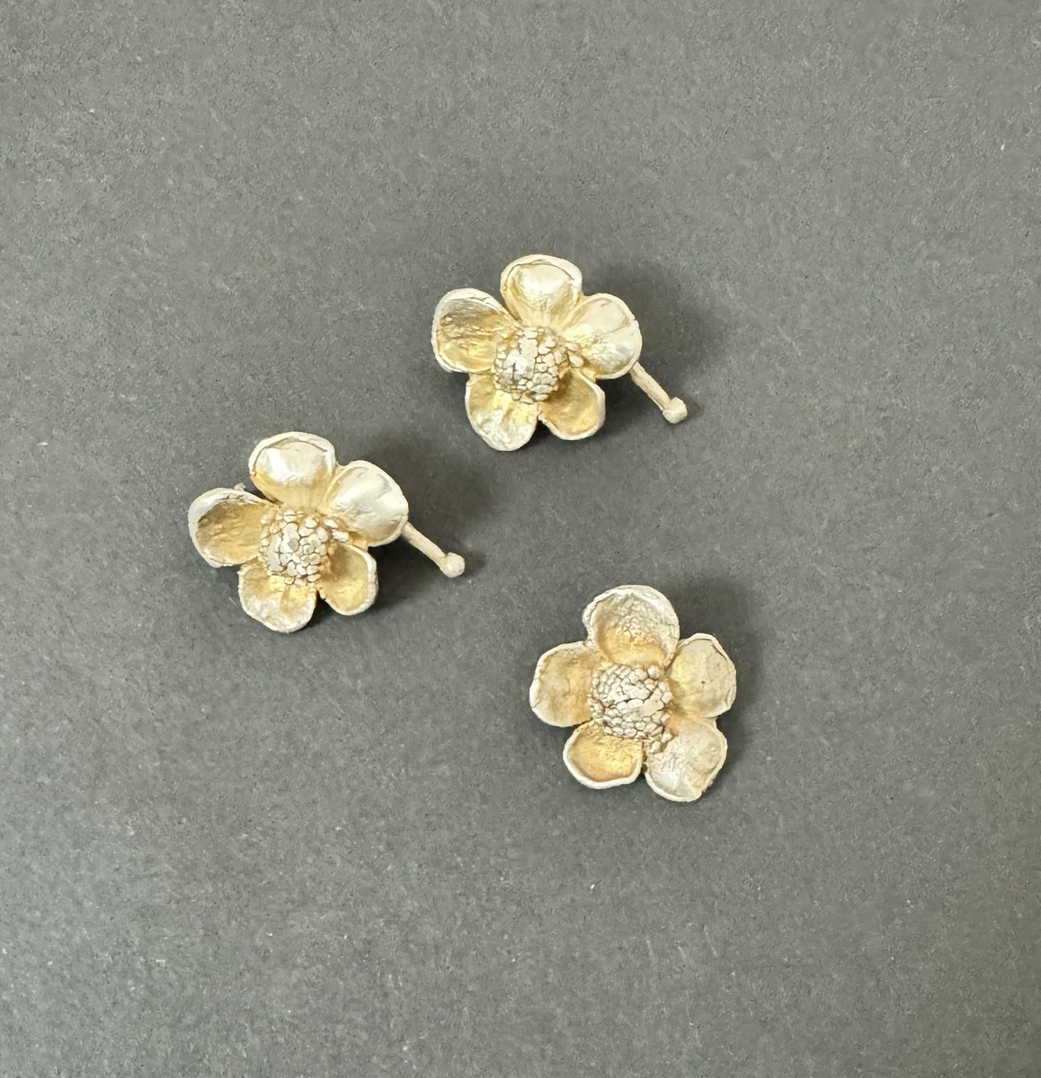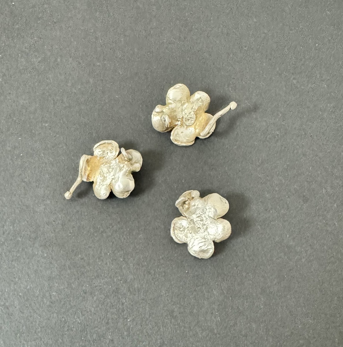 Trio de pendentifs mini-fleur en argent sterling.
