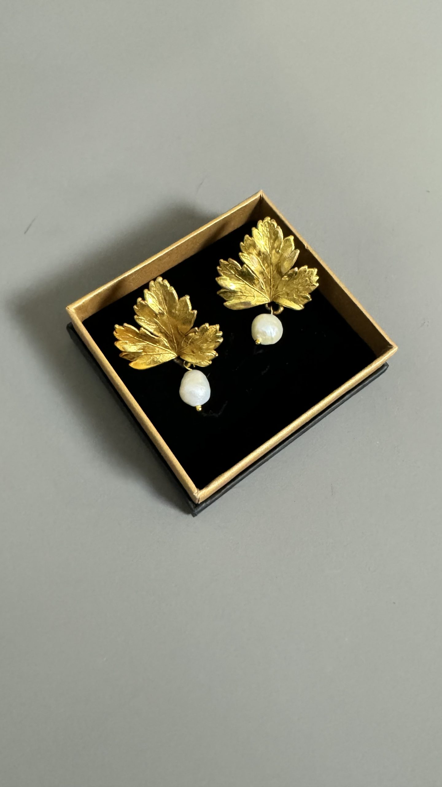 Boucles d’oreilles en argent sterling et perle naturel. Système d’attache à vis.