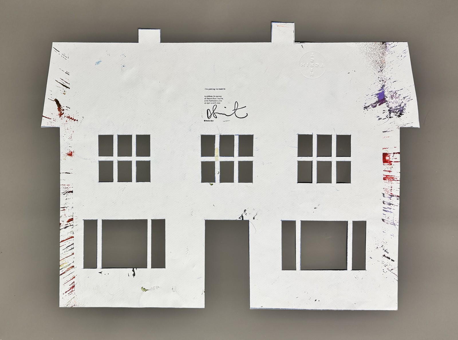 Acrylique sur papier découpé, signé et contresigné au dos du cachet de l’artiste et du timbre à sec ‘Hirst’, daté, avec la mention « This painting was made by / to celebrate the opening / of Damien Hirst, Requiem, / at the Pinchuk Art Centre » au dos.