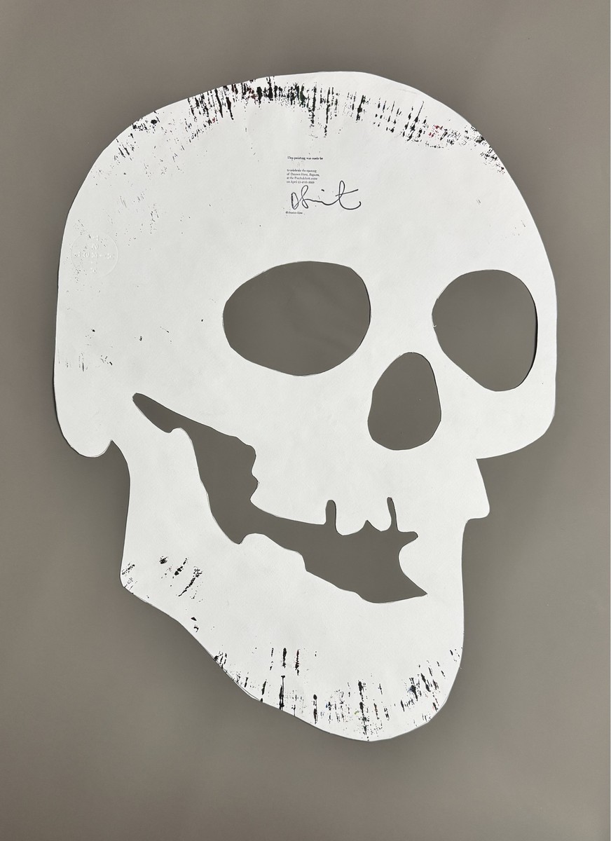 Acrylique sur papier découpé, signé au dos du cachet de l’artiste et du timbre à sec ‘Hirst’, daté, avec la mention « This painting was made by / to celebrate the opening / of Damien Hirst, Requiem, / at the Pinchuk Art Centre » au dos.