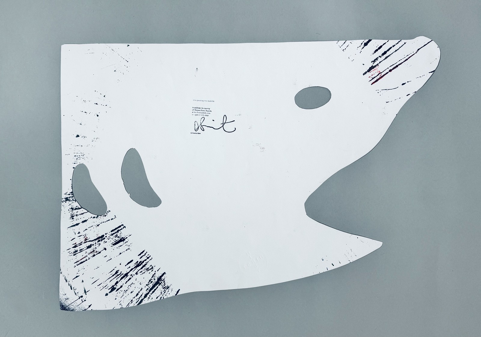 Contresigné au dos du cachet de l’artiste et du timbre à sec ‘Hirst’, daté, avec la mention « This painting was made by / to celebrate the opening / of Damien Hirst, Requiem, / at the Pinchuk Art Centre » au dos.