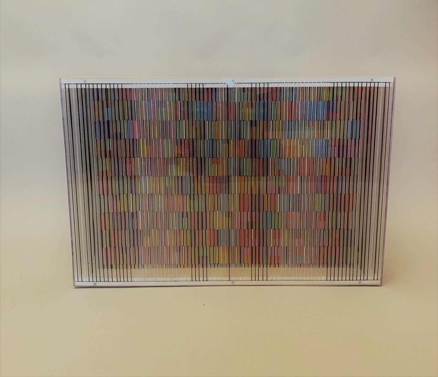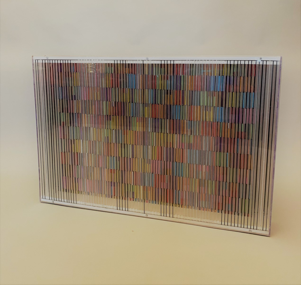 Sculpture en PVC, acrylique, lamelles de bois et élastiques sur papier ondulé et panneau de bois